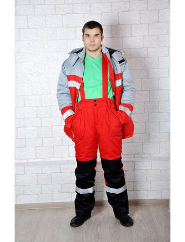 Костюм рабочий зимний М-171 красный состоит из куртки и п/комбинезона. Куртка: прямого кроя, застежка супат на молнии, накладные объемные карманы, манжет на рукаве фиксируется на липкой ленте, капюшон отстегивается, контрастная отделка, светоотражающая лента, утеплитель синтепон.П/комбинезон: прямые по всей длине, накладные объёмные карманы под инструменты, утеплитель синтепон.