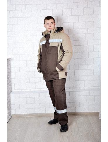 Костюм рабочий зимний М-174 состоит из куртки и п/комбинезона. Куртка: прямого кроя, застежка супат на молнии, накладные объемные карманы, манжет на рукаве фиксируется на липкой ленте, капюшон отстегивается, контрастная отделка, светоотражающая лента, утеплитель синтепон.П/комбинезон: прямые по всей длине, накладные объёмные карманы под инструменты, утеплитель синтепон.