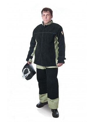 Костюм сварщика 2.0 м2 состоит из куртки и брюк ,изготовлен из брезента и спилка.Куртка с центральной потайной застёжкой на петли и пуговицы.Воротник отложной с накладкой из х/б ткани. Рукава втачные.Полочка спилковая (кокетка и средняя часть) с боковыми брезентовыми вставками. В рельефных швах находятся внутренние карманы.Спинка полностью из брезента. По низу кокетки обработаны два вентиляционных отверстия.Рукав трёхшовный, средняя часть из спилка. По низу рукава пата,регулирующая ширину рукава. В нижней части проймы (под рукавом) обработано вентиляционное отверстие.Все спилковые детали с изнаночной стороны закрыты х/б тканью.Брюки с откидывающейся передней частью,с застёжками в боковых швах на петли и пуговицы. На притачном поясе со шлёвками, застёгивающемся спереди на пуговицу. В боковых швах карманы. На передних половинках брюк расположены накладки из спилка.Задняя верхняя часть брюк усилена брезентовыми накладками.