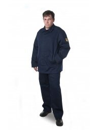 Костюм сварщика 330 гр/м2 состоит из куртки и брюк. Изготовлен из смесовочной ткани.Куртка с центральной потайной застёжкой на петли и пуговицы.Воротник отложной ,двойной.Полочка двойная ,с усиливающей накладкой,с притачным бочком. В рельефных швах находятся внутренние карманы.В верхней части бочка ,около проймы ,обработаны вентиляционные отверстия в виде петель.Спинка с настрочной кокеткой,по низу которой обработаны два вентиляционных отверстия.Рукав втачной,одношовный. С усиливающей накладкой по средней части рукава.Брюки с откидывающейся передней частью,застёгивающейся на петли и пуговицы по боковым швам,на притачном поясе со шлёвками под ремень,застёгивающемся на пуговицу спереди.Передние детали брюк усилены накладками,начиная от гульфа и до низа.На задних деталях брюк ,в верхней части шаговых швов,обработаны вентиляционные отверстия в виде петель.