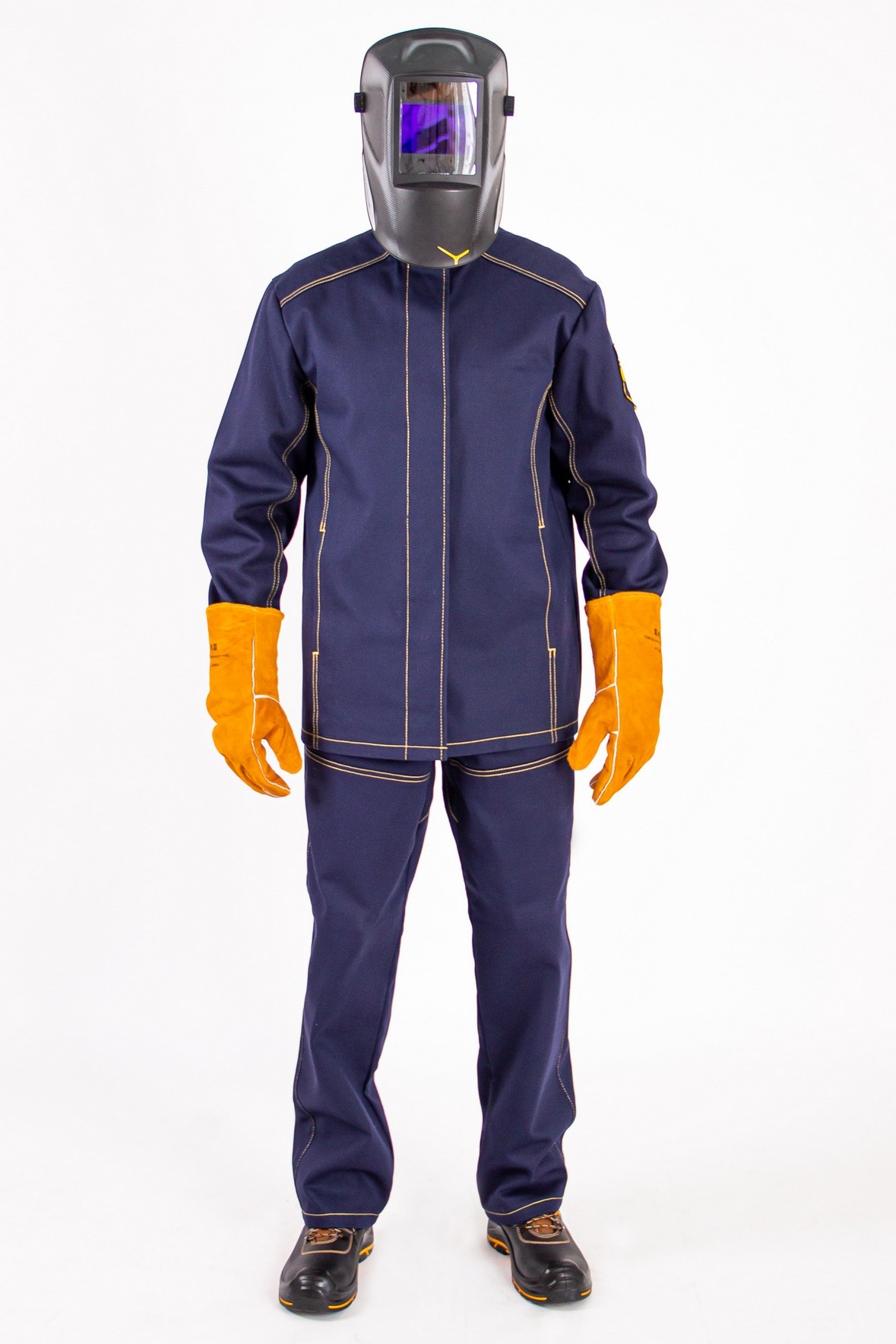 Костюм сварщика специальный для защиты от искр и брызг расплавленного металла. Произведен из 100% хлопковой ткани, плотностью не менее 450 гр./м2 , состоящий из куртки и брюк со съемными бретелями.
