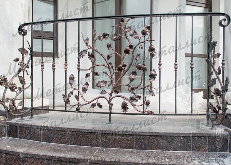 Срок исполнения до 15 дней Описание рама- кв.16(20), рисунок- Ф20-10, кв.12(14). Фактура "кора". Ручная художественная ковка. Дополнительно Столбы различной конфигурации, цельнометаллический или деревянный поручень, различная фактура материала. Любые дополнения и изменения рисунка по Вашим пожеланиям. Окрас Alcea (италия), Новакс (Россия) и другие краски. Цвет по RAL. Порошковое напыление. Патинирование. Нитроэмаль (черный цвет) - бесплатно.