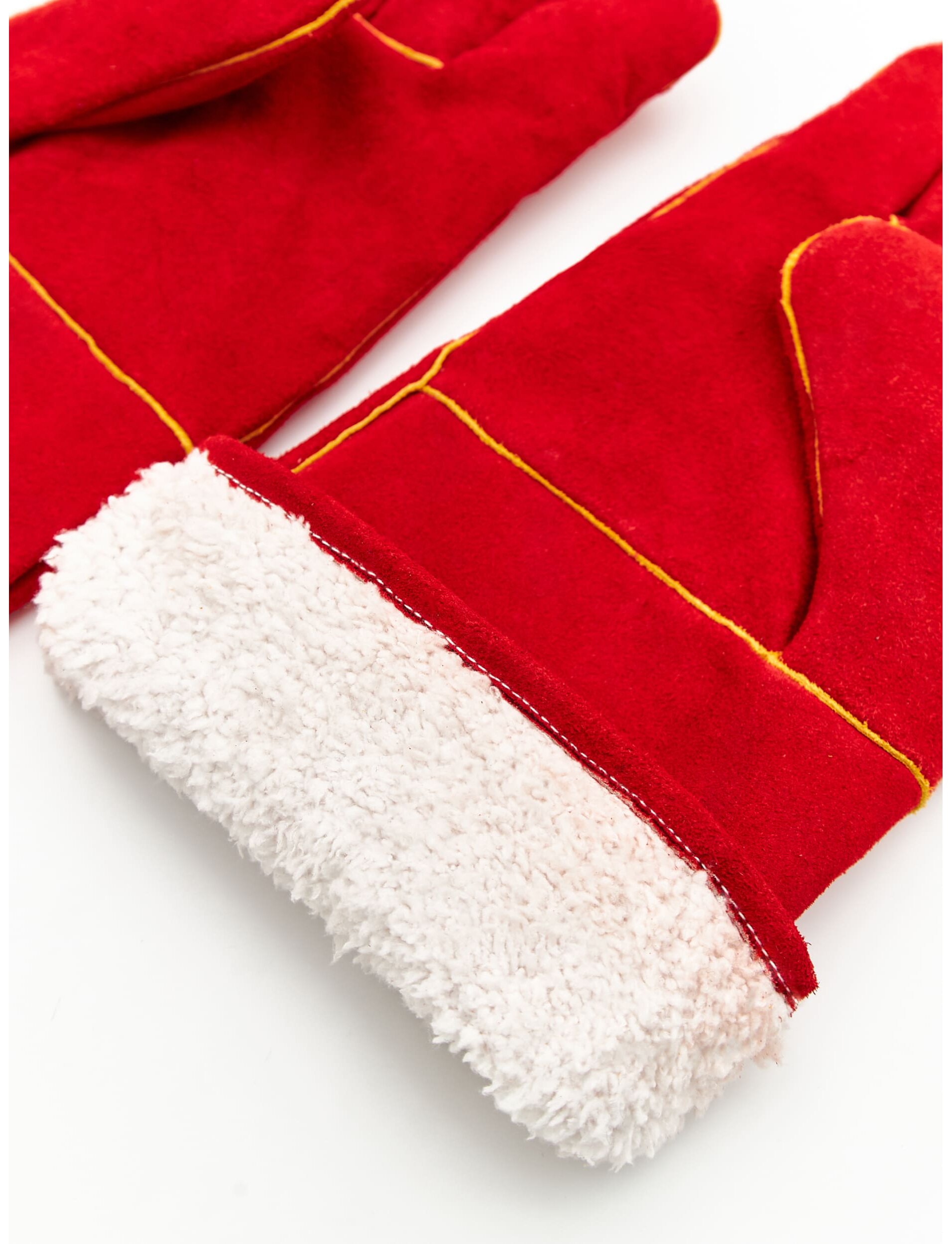 собопрочные перчатки сварщика (краги) для защиты от механических воздействий и повышенных температур из цельного спилка, пятипалые, с подкладкой из искусственного меха.