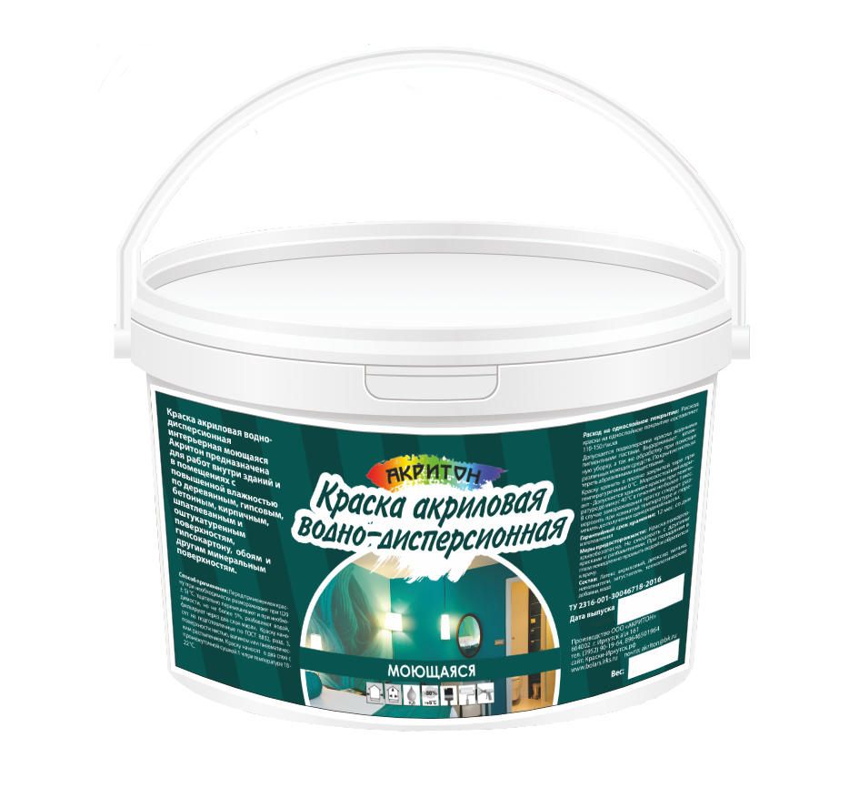 Краска акриловая водно-дисперсионная интерьерная моющаяся