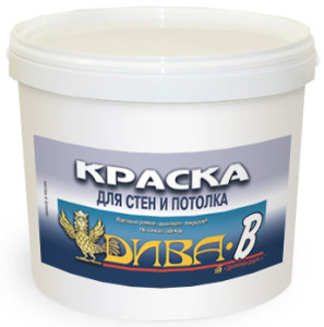 Краска "ДИВА-В" белая и супербелая - это акриловая водная краска для стен и потолков сухих помещений. Стойкая к сухому трению. Легко колеруется водными акриловыми и универсальными колерными красками и пастами. Обладает повышенной белизной (до 95%). Имеет прекрасную адгезию к штукатурке, бетону, кирпичу, гипсокартону, бумажным, флизелиновым и стеклообоям, загрунтованному металлу. Краска быстро высыхает. Хорошо наносится на поверхности, ранее окрашенные масляными, алкидными, латексными и другими красками. Не допускается нанесение на поверхности, ранее окрашенные известковыми, цементными или силикатными материалами. Расход краски - 150-260 гр на 1 м2 в один слой. Время высыхания - 1 час при 20°С и относительной влажности воздуха 65%. Стандартная фасовка: евроведро 3 литра (4 кг), евроведро 10 литров (15 кг), евроведро 20 литров (28).