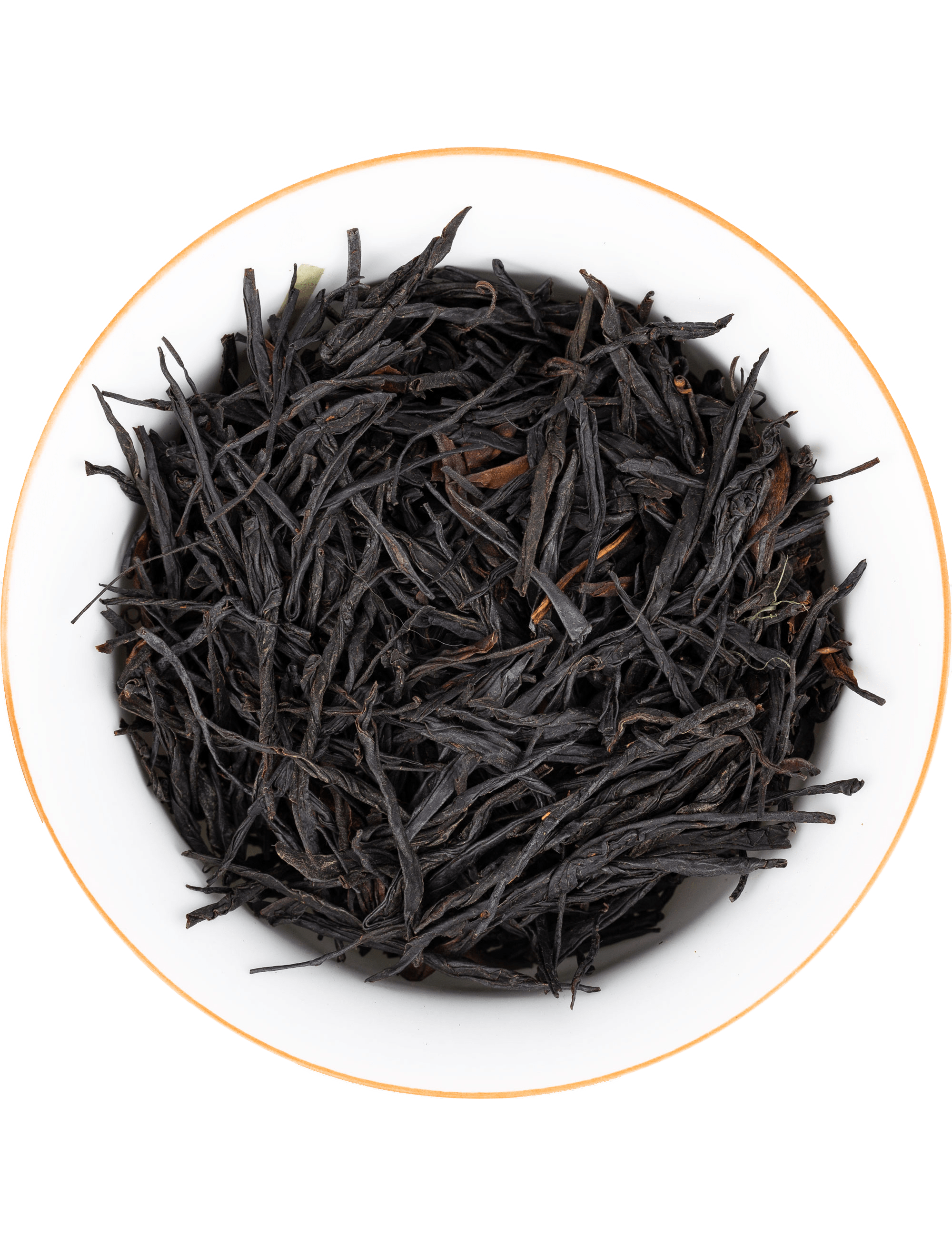 Тонкие черные листочки и почки, напоминающие опавшие хвойные иголки. Аромат очень тонкий и сдержанный в начале, но стоит только начать прогревать чай, как он начинает давать яркие ассоциации: гречишный мед, красные ягоды, кизил и инжир.