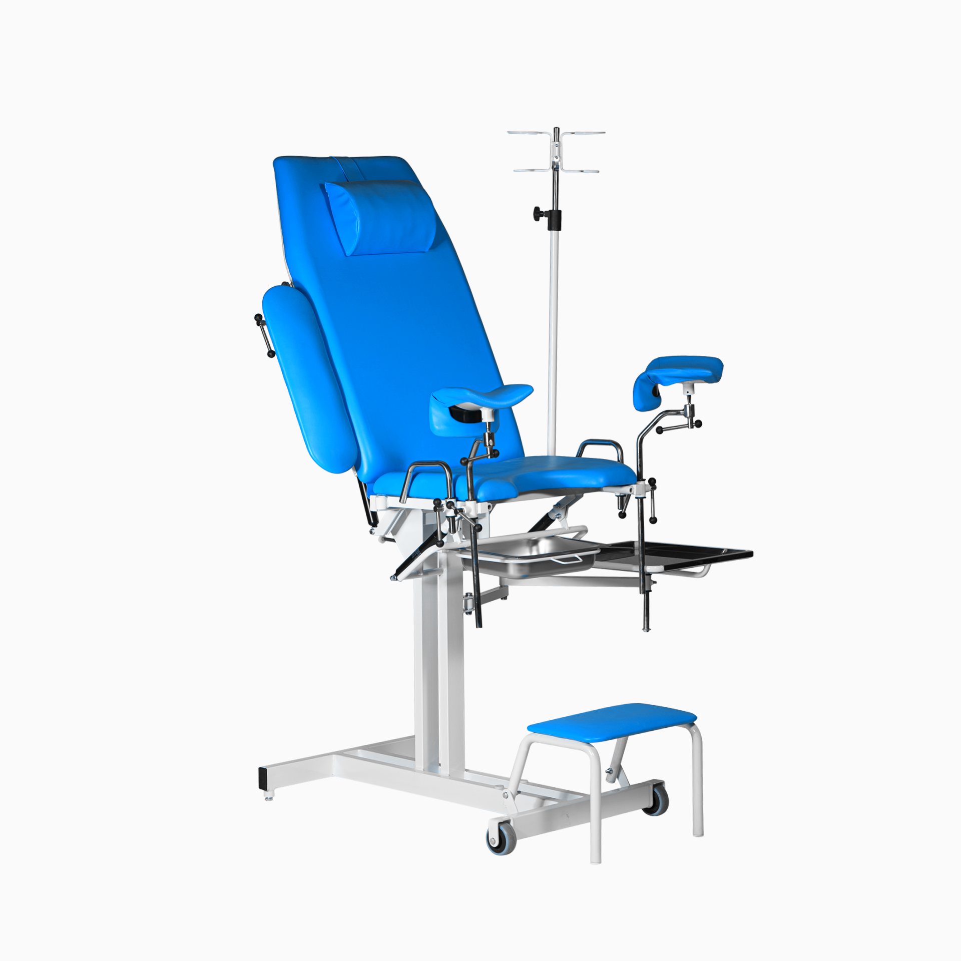 Кресло гинекологическое КГ-02 предназначено для помещения на нём женщин при гинекологических обследованиях, проведения различных процедур, а также малых хирургических вмешательств. Кресло состоит из: основания, ступеньки, неподвижной стойки, тазовой панели, спинной панели. Мягкие части спинной, тазовой и ножной панелей изготовлены из плотного пенополиуретана толщиной 50 мм на твердом основании, бесшовно обтянутые винилискожей, устойчивой к истиранию и воздействию дезинфицирующих средств. Длина - 1122 мм. Ширина - 1025 мм. Высота - 1690 мм.