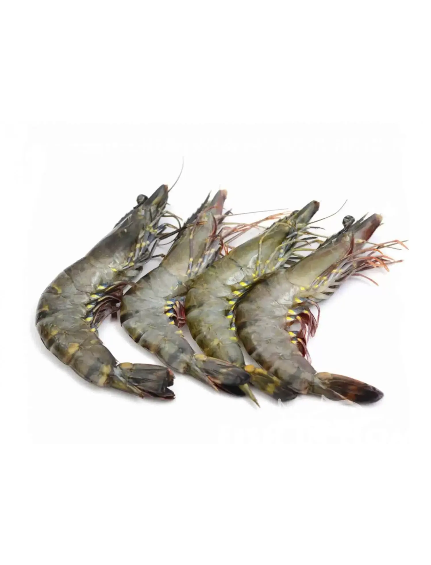 Чёрные тигровые креветки с головой (с/м — свежемороженые) — премиальный морепродукт с выразительным внешним видом и насыщенным вкусом.