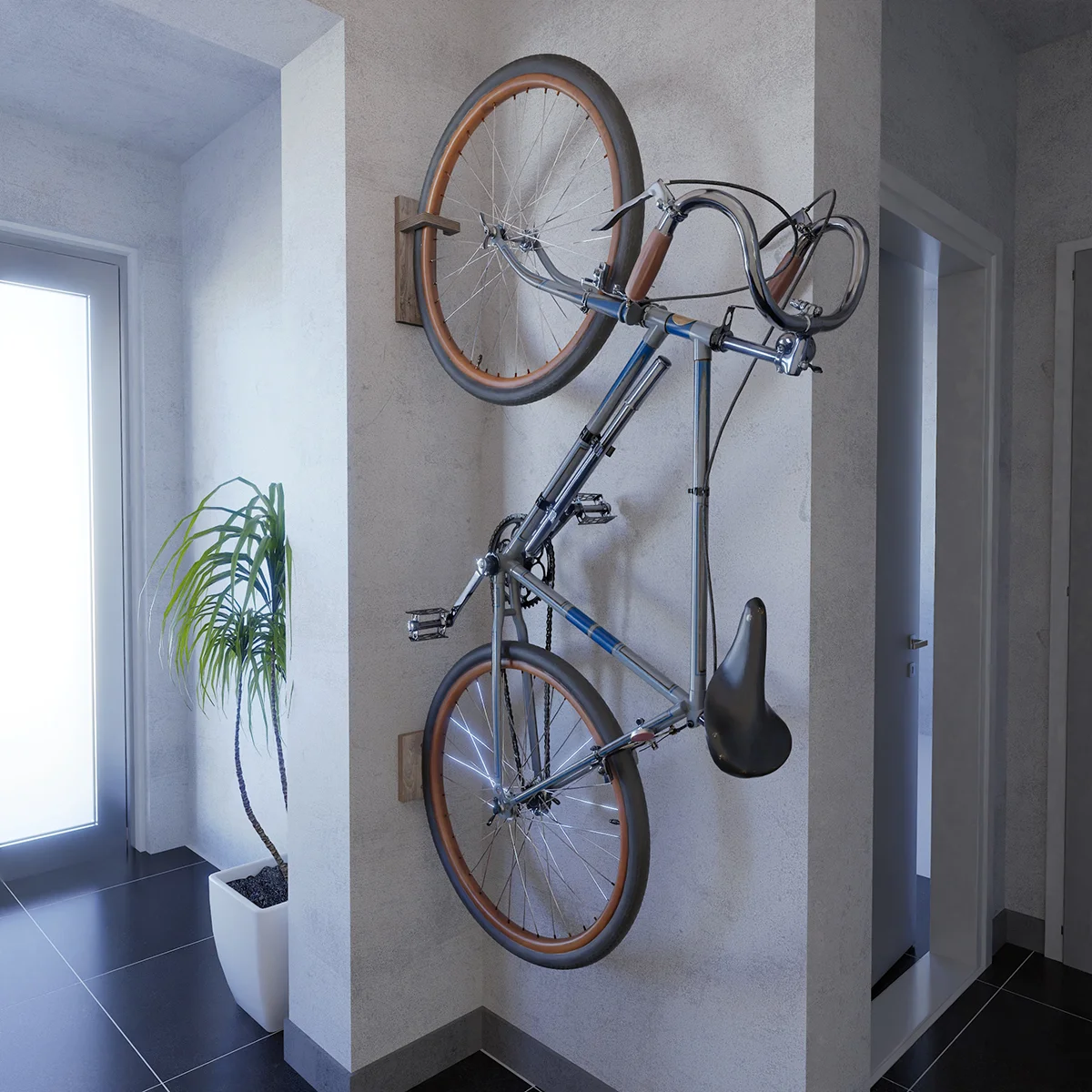 Кронштейн для вертикального крепления решает проблему хранения велосипеда в помещении. Повесить его на стену можно и в коридоре, и на балконе, и в гараже. Часто в условиях городской квартиры настенное крепление велосипеда — это единственный вариант удобного и безопасного размещения железного товарища. Преимущества настенного кронштейна: Надежное крепление велосипеда за обод колеса без нагрузки на спицы Экономия места, эффективное использование пространства стены Легкий и быстрый монтаж на саморезы Натуральный материал и экологичная обработка Универсальность: для всех видов велосипедов с шириной покрышки до 55 мм