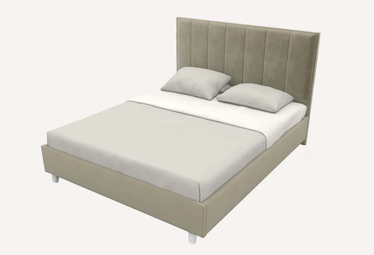 Царги кровати выполнены из ЛДСП и обтянуты тканью рогожка или велюр, что добавляет текстуры и визуального интереса. Сочетание материалов и дизайнерских решений делает эту кровать универсальным выбором для любого стиля интерьера, будь то классика или модерн. Чехол на царгах не съемный, что обеспечивает долговечность.