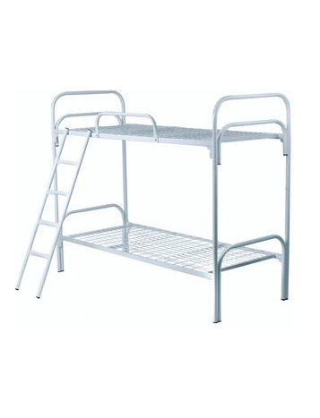 Размеры (ДхШхВ): 1974х710х1560 мм Спальное место: 1910х700 мм Усиленная двухъярусная кровать предназначена для размещения рабочих в бытовках. Так же это универсальная модель кровати для размещения выездных бригад при проведении локальных ремонтных работ. Такие кровати поставляются оптом от 50 шт. Упакованы по 2 шт. Основание: одно ребро усиления из профильной трубы 20×20мм + сетка 100×100мм. Покрытие: полимерно-порошковое Спинка – круглая труба D 32 мм Соединение — клин/петля Цвет – белый/белый. Вес — 29,5 кг Упаковка: стрейч-пленка. Объем: 0,36 м3