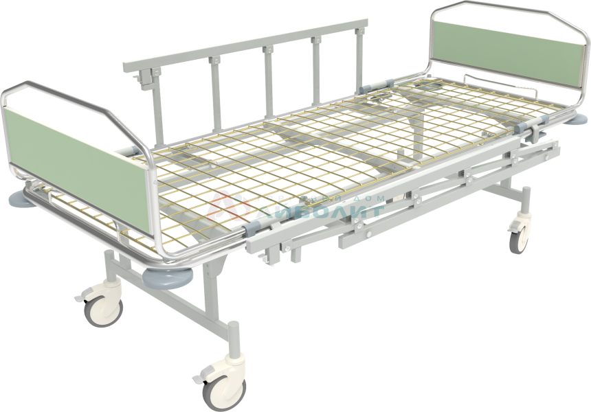 Габариты, мм (ШхГхВ): 2030х850х900 Размер ложа: 2000 х 800 мм. Высота ложа от пола: 545 мм. Ложе кровати 1-но секционное. Максимальная нагрузка на ложе 220 кг. Колесные опоры диаметром 125 мм с тормозом. По углам кровати расположены защитные бамперы. Кровать может быть укомплектована доп. опциями: Спинки: исполнение HPL / ЛДСП Боковые ограждения: складывающиеся Стойка для вливаний (телескопическая) Полка для судна Матрац