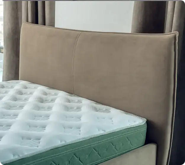 Габаритные размеры кровати тщательно продуманы для максимального удобства: высота изголовья 1130 мм и глубина 2180 мм. Просвет над полом составляет 55 мм, а заглубление матраса - 65 мм, что позволяет использовать матрасы различной высоты без ограничений. Высота по краю царги равна 335 мм, что обеспечивает удобный доступ к спальному месту. Обратная сторона изголовья выполнена из основной ткани, а само изголовье имеет наполнение в виде пружинного блока "змейка", обеспечивающего дополнительный комфорт и мягкость. Эти характеристики делают кровать идеальным выбором для тех, кто ценит сочетание стиля, комфорта и функциональности в интерьере.
