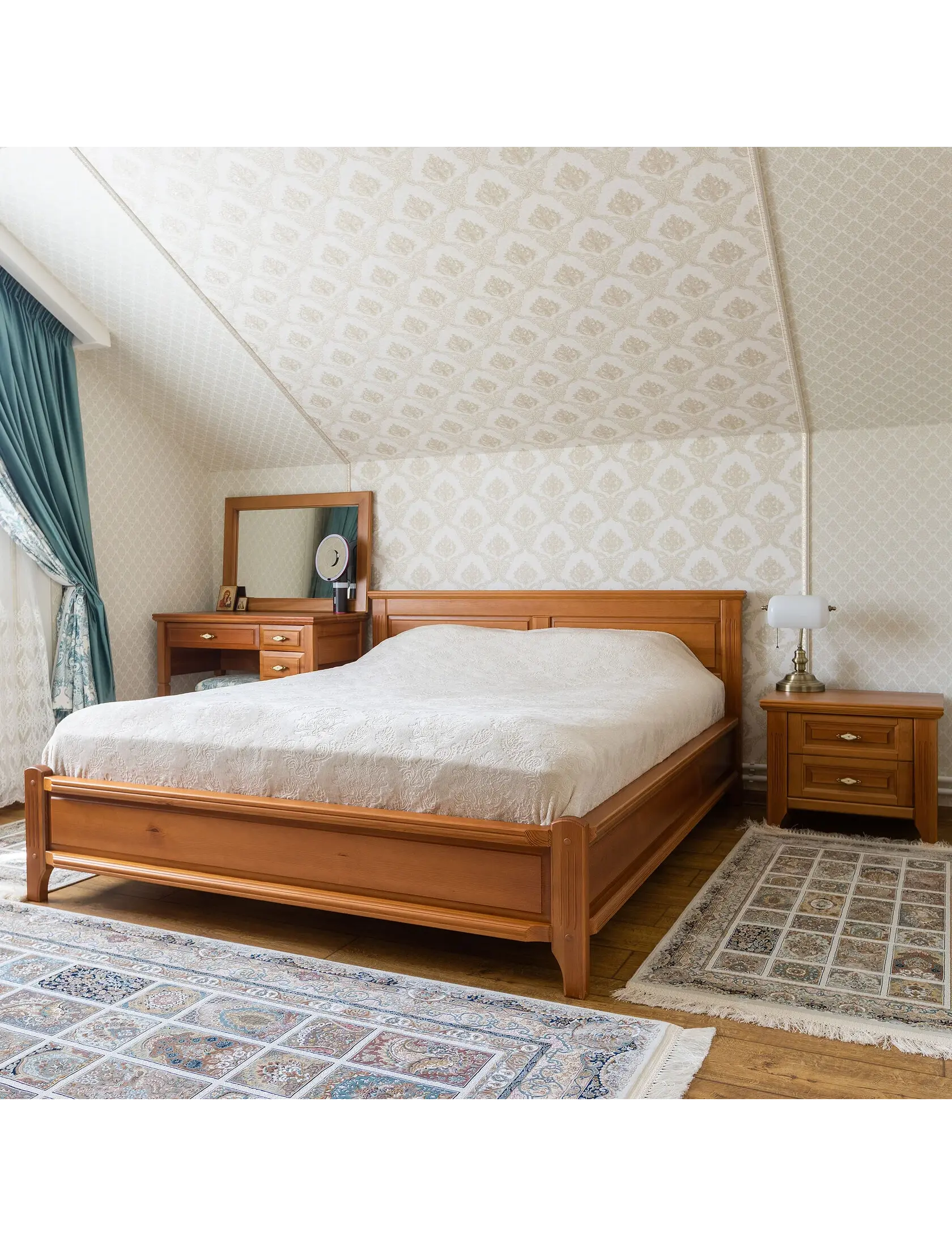 Лев — массивная основательная кровать с обилием деталей: филенки на изголовье и боковинах, каннелюры на ножках и изящный багет на изголовье кровати. Лев идеально впишется в интерьер как в классическом стиле, так и в стиле прованс. Срок изготовления По договору 45 дней, по факту порядка 3 недель (зависит от занятости столяров) Размеры Высота спинки 90 см Массивно Все заготовки кровати имеют толщину не меньше 4 cм, ширина ножки 8 см, ширина бортов 6 см. Кровать Лев — это массивное изделие с большим количеством сырья. Надежно Настил кровати каркасного типа. Широкие ламели клеятся на шипы, имеют толщину не меньше 20 мм. Сверху стелится фанера на всю площадь настила. Матрас лежит на ровной поверхности. Сам настил укладывается на приклеенные к каркасу рейки, и дополнительно крепится к каркасу на саморезы. При испытаниях на производстве кровать с матрасом выдержала не меньше 400 кг на площади 0,25 м2. Это очень надежно. Индивидуальное исполнение Кровать изготавливается на заказ, поэтому вы можете изменить размеры, выбрать тип и цвет покрытия. Цена указана на кровать в размере 160х200 в базовом покрытии.
