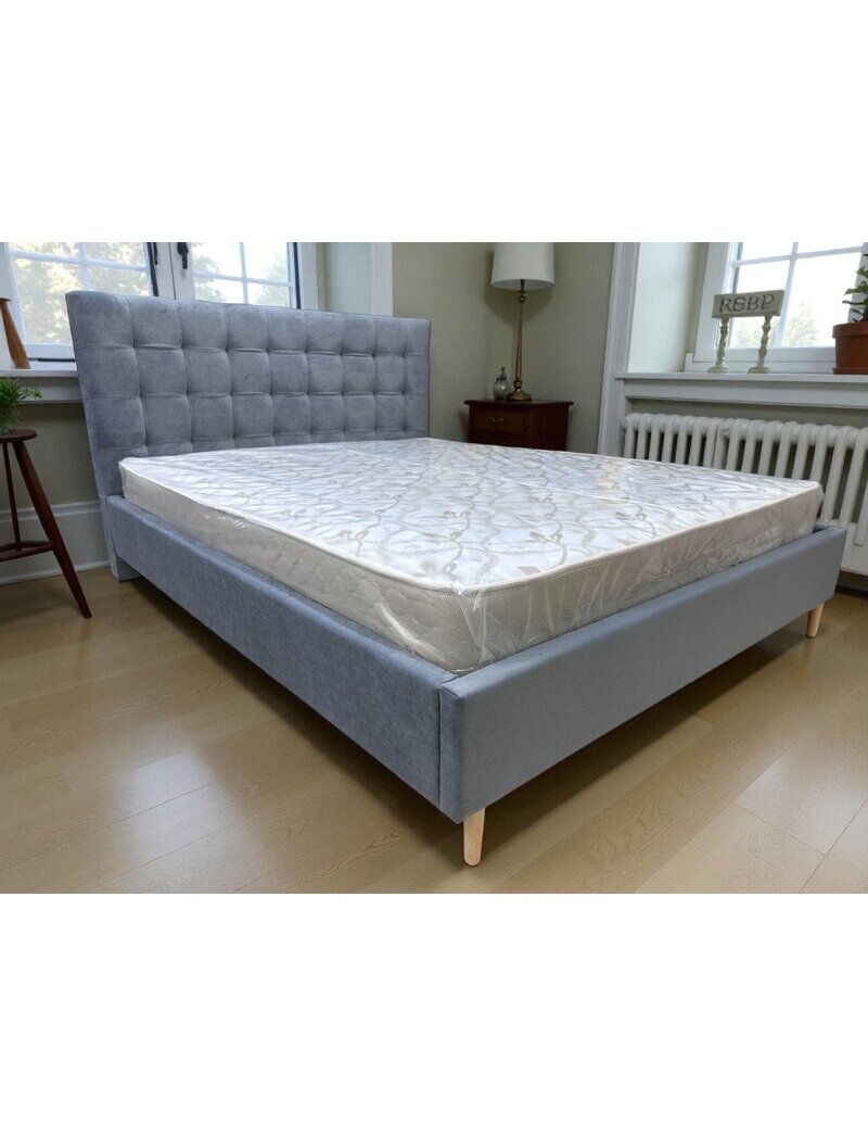 Мягкая интерьерная кровать Бена. Спинка сшита из отдельных квадратов и имеет утяжки. Толстый слой наполнителя делает ее особо мягкой и удобной. Спинка высотой 110 см. Материал ДСП. Обивочная ткань на выбор покупателя. Кровать изготавливается как с подъемным так и без подъемного механизма. В кроватях с подъемным механизмом и без подъемного механизма на царгах не съемный чехол и устанавливаются по 2-м углам две опоры высотой 10 см, что очень удобно для уборки. Внешние габариты: длина + см, ширина + см. Размер спального места: Ширина 120,140,160, 180, 200 см х Длина 200,190 см. Максимальная нагрузка на спальное место 120 кг на всю поверхность до 150 кг. (возможно изготовление нестандартного основания, которое выдержит 300 кг - только без ПМ.) Обивка - Большой выбор тканей и экокожи. В комплект входит: 1) Кровать; 2) Ортопедическое снование с березовыми ламелями, а для кроватей с подъёмным механизмом - ПМ на газлифтах и система металлических труб; 3) Комплект опор; 4) Спинка прикроватная; 5) 3 царги; 6) Дно - МДФ 6 мм (для кроватей с подъемным механизмом)