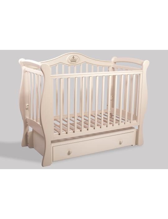 Кроватки выполнены из массива кавказского бука; Боковая стенка регулируется в двух положениях и при желании может быть снята; Реечное дно под матрас регулируется в 2-х положениях; Силиконовые накладка в комплекте; Маятник универсальный; Две рейки передней спинки снимаются; Удобный вместительный ящик Кроватка - УМКА, маятник универсальный, цвет слоновая кость, материал для изготовления кроватки – древесина бука, прочная и красивая. В дизайне кроватки учтены повышенные требования к безопасности. Все детали имеют закругленные углы, а боковины кроватки дополнительно снабжаются накладками из ПВХ. Надежный маятниковый механизм колыбели приводится в действие легким движением руки. Так же легко опускаются боковины кроватки, когда маме нужно взять малыша на руки и выдвигается вместительный ящик для белья, вмонтированный в кроватку. 2.Для малыша предусмотрено особое расположение элементов ограждения кроватки, закругленные углы и безопасная краска, которая не повредит здоровью малыша даже при «пробе на зуб». Мама оценит возможность легко и просто опустить боковину, без лишних усилий укачать крошку. Кроватки производства Baby Луч комплектуются выдвижными ящиками для белья и все необходимое всегда есть под рукой в прямом смысле слова