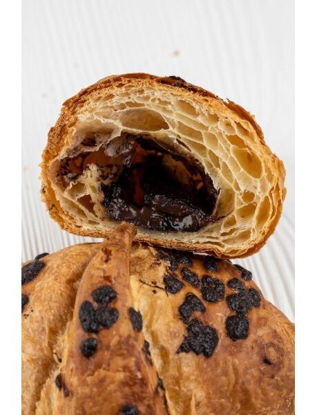 Идеальное сочетание золотистой, хрустящей корочки из слоёного теста и нежной, влажной сердцевины, внутри которой тает ароматный шоколад