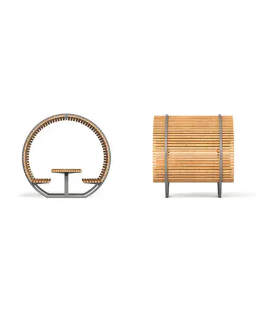 Круглая беседка со столом - это компактное, полузакрытое садовое сооружение, предназначенное для уютного отдыха, чаепитий и общения. Она оснащена встроенными по периметру скамейками и центральным столом, что создает дружелюбную атмосферу. Используется для защиты от солнца, дождя и украшения ландшафта. Материал - стальная труба, лист, доска хвойных породю Габариты - 2500*2000*2200 мм.