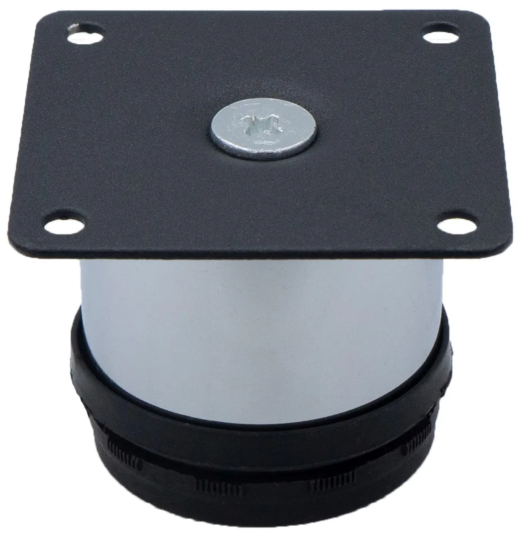 Опора мебельная регулируемая высотой H50 - 65 мм для корпусной мебели: столов и журнальных столиков, тумбочки, дивана, пуфа, тумбы или шкафа. Ножка круглая мебельная регулируемая диаметром D50 мм и высотой 5 см + 1,5 см из стали. Одна ножка выдерживает нагрузку до 100 кг. Защитное тонированное покрытие металла предотвращает ранний износ изделия и придаёт декоративность его внешнему виду. Возможность регулирования опоры по высоте избавит от проблем в использовании мебели с неровным полом. Цвет модели серебристый. Фиксация к мебели выполняется путём привинчивания. Цвет: хром. Материал: сталь, пластик. Вид монтажа: для корпусной мебели. Размеры ножки в закрытом состоянии: 5*5*5 см. Регулировка по высоте: 15 мм. Максимальная нагрузка на 1 ножку: 100 кг. Размер квадратного основания: 6*6 см