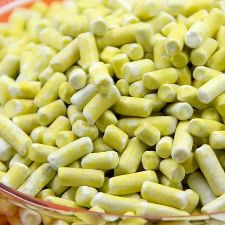 Ксантогенат калия бутиловый - порошок или небольшие цилиндрические брикеты от светло-серого до желтовато-зеленого цвета с запахом, хорошо растворим в воде. Разлагается в присутствии влаги.