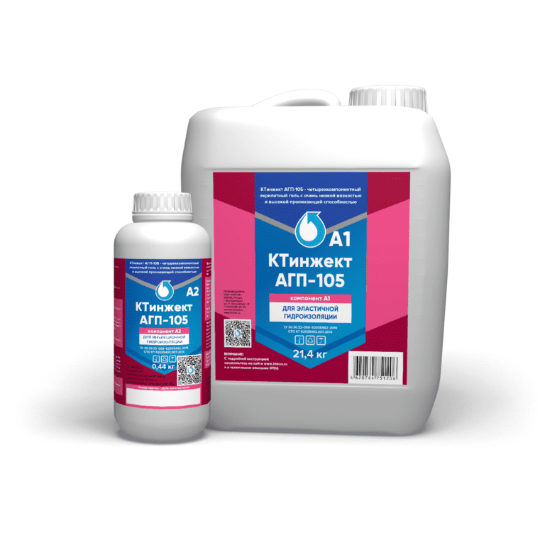 КТинжект АГП-105 представляет собой быстрореагирующий четырехкомпонентный акрилатный гель с очень низкой вязкостью и высокой проникающей способностью. Применяется для связывания грунтов и создания антифильтрационных мембран в грунтах, в том числе с низкими коэффициентами фильтрации, создания гидроизоляционных мембран методом экрана, ремонта и герметизации холодных и деформационных швов, ремонта поврежденных гидроизоляционных мембран, для постоянной гидроизоляции облицовок тоннелей и шахт, восстановления непроницаемости строительных кон-струкций за счет герметизации трещин и пустот, для становки несильных притоков воды через трещины и дефекты конструкции. Имеет длительное время устойчивости к неконцентрированным кислотам и многим типичным для грунтов химическим веществам. Материал хранить в крытых сухих складских помещениях в оригинальной невскрытой заводской упаковке при температуре от +5 °С до + 35 °С.