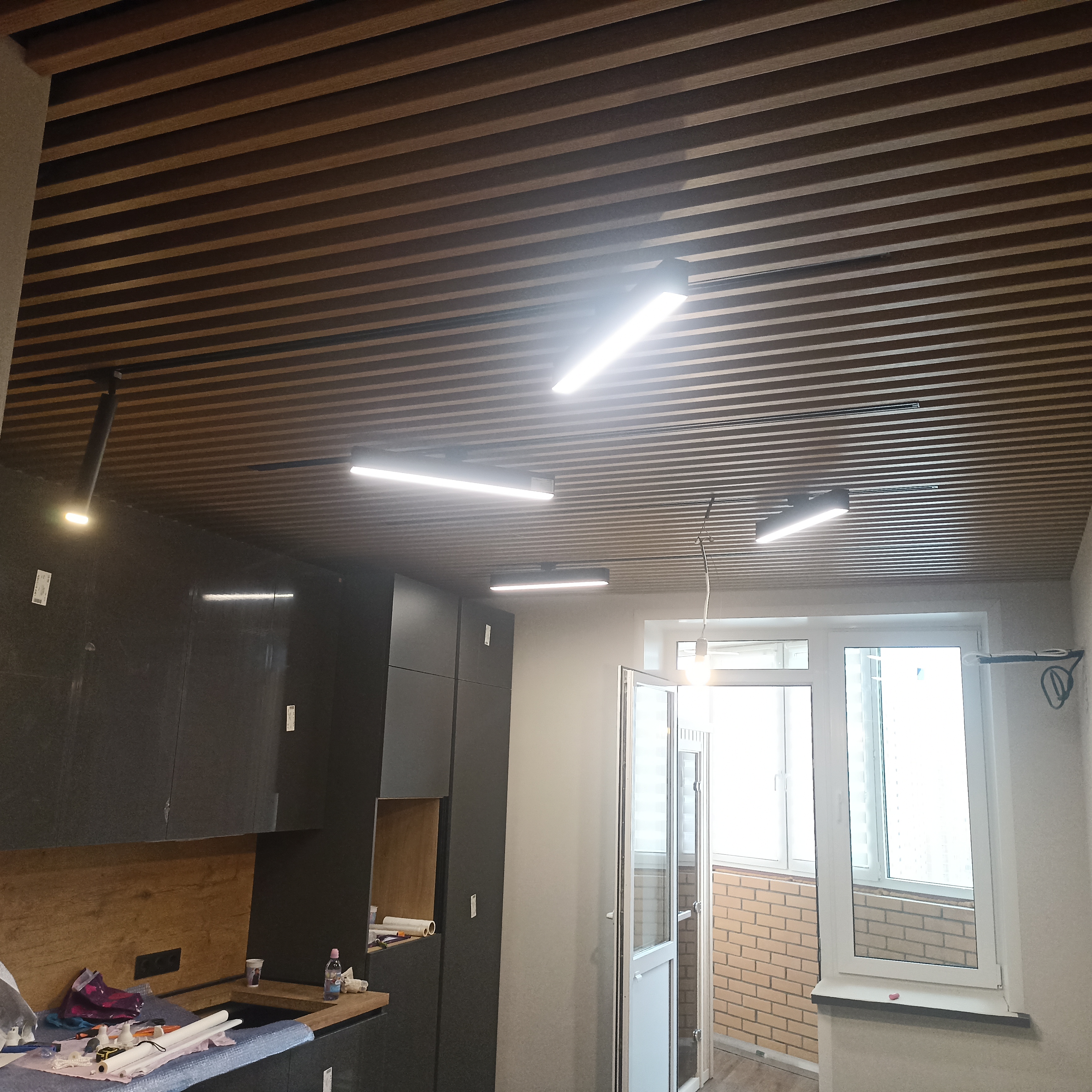 - Комплектация: Рейки, несущие направляющие, подвесы с тягой, угловые профили (плинтуса), крепеж.
