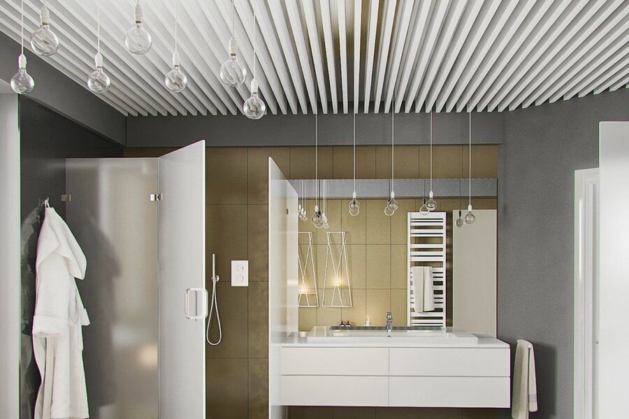 Цвет: Любой по каталогу RAL, хром, золото, комбинации цветов для разных ярусов. Фактура: Матовая, глянцевая, зеркальная, текстурная (под дерево). Размер «куба»: Может варьироваться в зависимости от ширины рейки и шага монтажа. В комплект поставки входят все необходимые элементы системы для монтажа. Преобразите свое пространство – добавьте ему измерения с кубообразным реечным потолком!