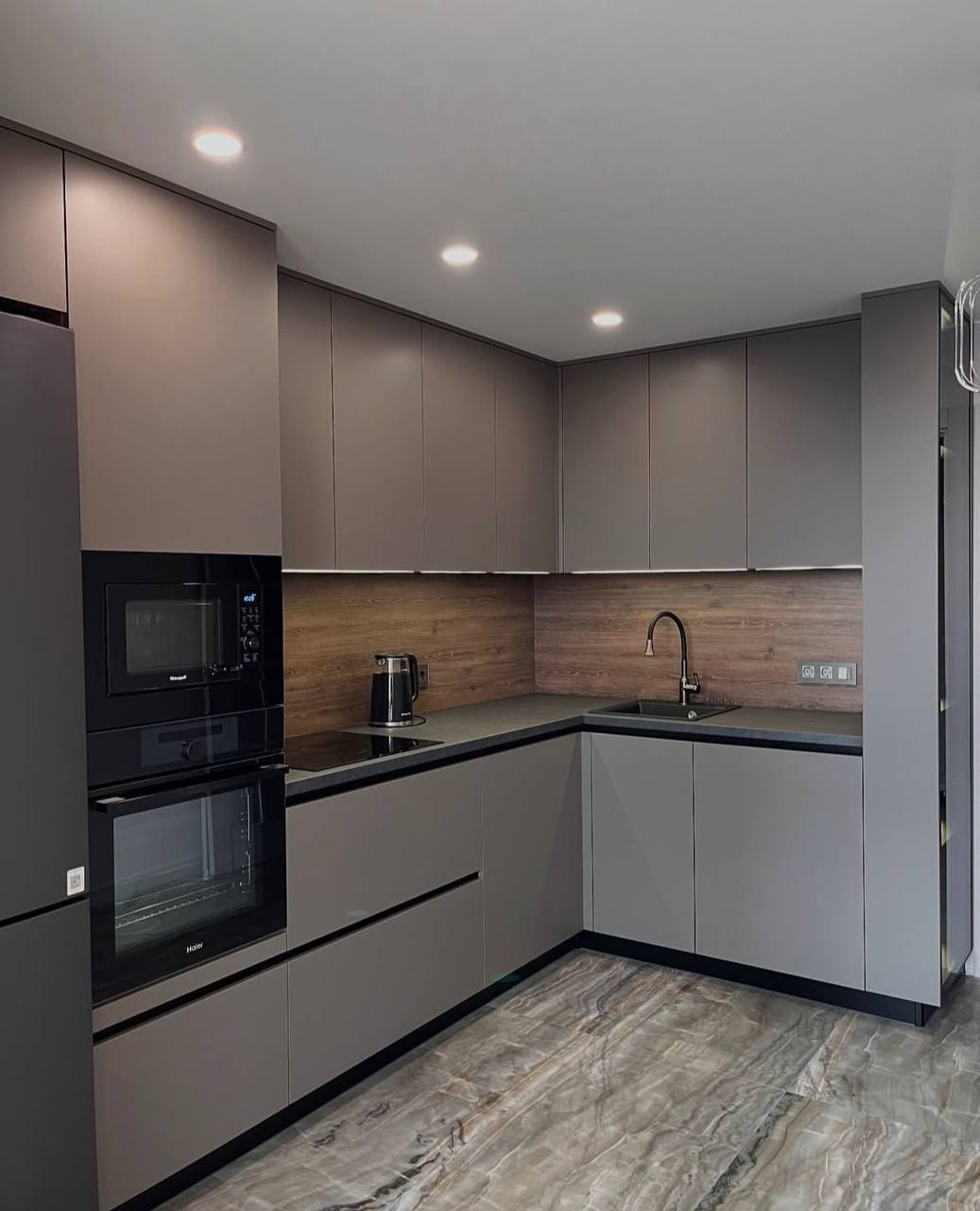 Изготовили и установили угловую кухню в ЖК “Клевер” за 42 дня. - Размеры: 2100*2150 мм - Корпус: ЛДСП (Томск) – надежность и экологичность - Фасады: МДФ в ПВХ – элегантность и долговечность - Столешница: ЛДСП 38 мм – прочность и стиль - Фурнитура: Boyard – безупречное качество в каждой детали