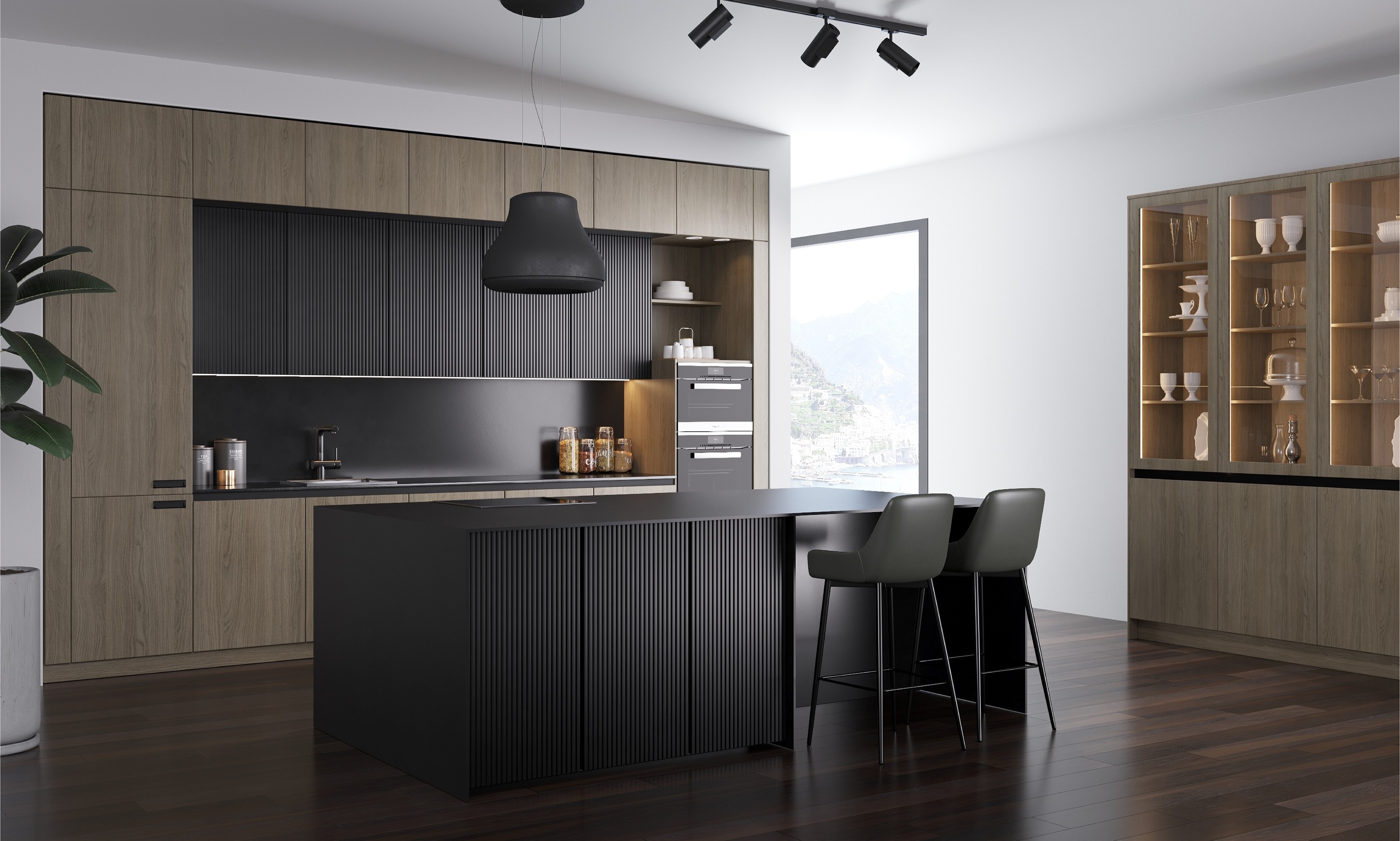 Кухня «Бари» — элегантность природных текстур и современных технологий Стиль: Современная классика с акцентом на натуральные материалы Материалы: Фасады: МДФ с покрытием: Натуральный шпон — благородная древесная текстура Матовая эмаль — глубокий цвет, устойчивость к царапинам и влаге Ручки: Скрытый профиль GOLA для бесшовного дизайна Особенности: ✔ Строгие геометрические формы — лаконичность без лишних деталей ✔ Универсальная цветовая гамма — от теплых древесных до насыщенных матовых тонов ✔ Два варианта покрытия — натуральность шпона или практичность эмали ✔ Скрытые механизмы — система push-to-open для чистых линий Преимущества: ✅ Шпон — создает атмосферу уюта и натуральности ✅ Матовая эмаль — практичное решение для семей с детьми ✅ Безопасность — скрытые ручки без выступающих элементов ✅ Гармония с интерьером — от скандинавского стиля до лофта Технические детали: ▸ Материал фасадов: МДФ + шпон / матовая эмаль ▸ Ручки: GOLA (алюминиевый профиль) ▸ Рекомендуемые цвета: Шпон: дуб, орех, ясень Эмаль: графитовый, мокко, белый матовый «Бари» — кухня, где природа встречается с современными технологиями.