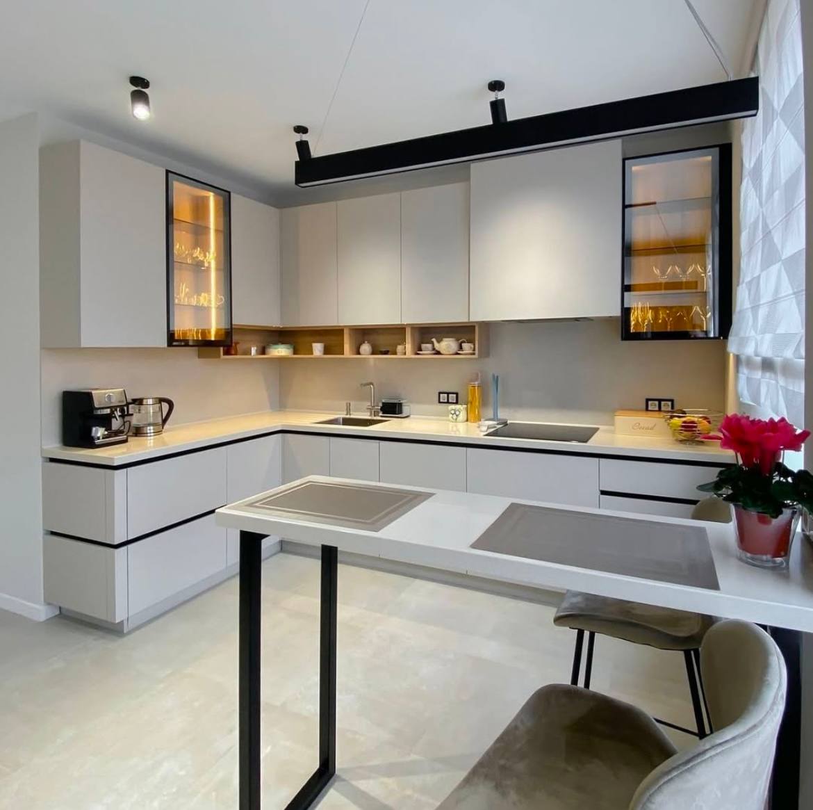 Изготовили и установили угловую кухню в ЖК “Римский квартал” за 36 дней. - Размеры: 1700*3200 мм - Корпус: ЛДСП – надежность и экологичность - Фасады: Пластик – устойчивость к механическим повреждениям - Столешница: Искусственный камень – отсутствие швов н соединениях - Фурнитура: Blum – пожизненная гарантия