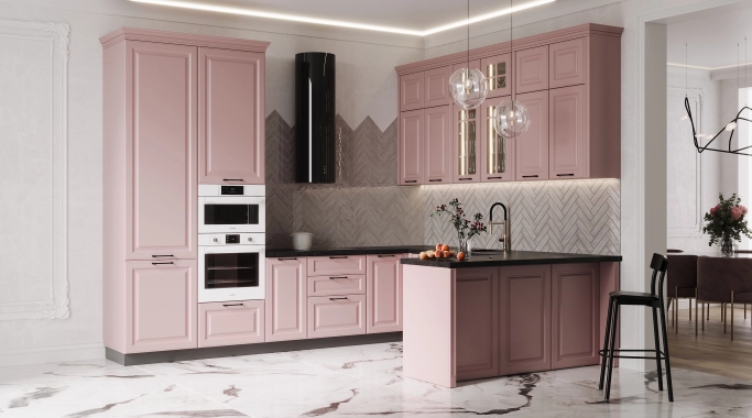Кухня Лигурия - олицетворение классики в новой форме. Розовые фасады, словно лепестки утренней розы, окутывают пространство теплом и уютом, в то время как мраморные элементы придают интерьеру природного очарования и утонченности. Здесь каждый предмет и каждая деталь гармонично сочетаются, создавая идеальное пространство для отдыха и вдохновения на кулинарные открытия.