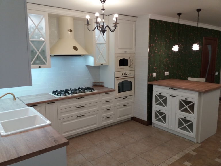 Кухня с фасадом из массива ясеня — воплощение роскоши и уюта. Фасады окрашены эмалью по каталогу NCS. Фрезеровка классическая «квадро» лаконичная и сдержанная, сочетает в себе сдержанность классического стиля и великолепие массива ясеня. Встроены посудомоечная машина, духовой шкаф и микроволновая печь. Кухонный остров – удобный и функциональный элемент гарнитура, превращающий приготовление обеда в удовольствие.