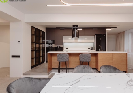 Кухня: 3.600 х h2560 Корпус: ЛДСП, Графит Фасады: ПВХ велюр серый. иск.камень Hanex D-024 (Южная Корея) Столешница + фартук: иск.камень Hanex D-024 (Южная Корея) Ручки-профиль: Gola, черный Ящики: с доводчиком, tandembox, antaro, Blum (Австрия) Петли: с доводчиком, Blum (Австрия) Подъемный механизм: HK-S, Blum (Австрия) Профиль для св.ленты: врезной Свет подсветки: нейтральный Включатель: сенсор Пеналы со стеклом: 1628 х h2210 Корпус: ЛДСП, Дуб Седан Фасады: профиль алюминиевый со стеклом Стекло: серое Ручки: Tip-on. (открытие при нажатии) Петли: с доводчиком, Blum (Австрия) Профиль для св.ленты: врезной Свет подсветки: нейтральный Включатель: сенсор Остров: 3.350 х 1100 х h900 Корпус: ЛДСП, Дуб Седан Фасады: ПВХ Дуб Сантана Столешница + мойка интегрированная: иск.камень Hanex D-024 (Южная Корея) Ручки: Tip-on. (открытие при нажатии) Ящики: с доводчиком, tandembox, antaro, Blum (Австрия) Петли: Blum (Австрия) Выдвижная корзина-сушка: Carma, Boyard (Россия) Алюминиевый поддон под раковину Лоток под столовые приборы, серый Мусорное ведро для распашного фасада: Boyard (Россия)