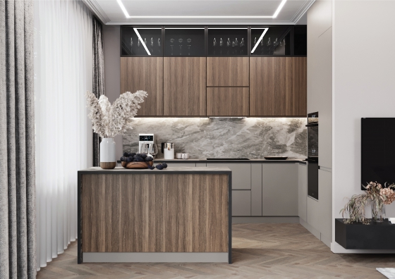 Cамая экологически чистая ЛДСП торговой марки «LAMARTY» с классом эмиссииформальдегида Е0,5. МДФ 19 мм фирмы «Kronospan» (Германия). Фасады окрашиваются по уникальной технологии двухкомпанентной окраски краской фирмы «Tikkurila» (Финляндия). Декоративный бумажнослоистый пластик фирмы «Slotex» Широкий ассортимент стекла производителей Бельгии, Чехии. Самая передовая фурнитура «BLUM», «VIBO»,«VAUTH-SAGEL». Бытовая техника и аксессуары для кухни ведущих мировых производителей