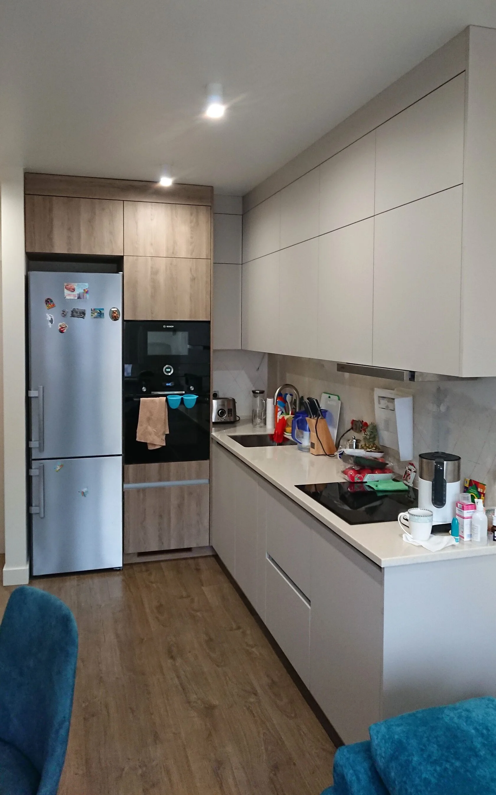 Особенности: Расчет мебели удаленно Реализация дизайн проектов и любых ваших задумок Экологичные материалы Гарантия 5 лет Более 12 лет на рынке Для изготовления мебели мы используем ЛДСП ведущих производителей Egger и Kronospan. Эти плиты являются экологически чистым строительным материалом, имеют высокую стойкость к различным температурным режимам и устойчивость к повышенной влажности. Отвечают самым жестким требованиям качества. По некоторым параметрам превосходят натуральную древесину. В качестве красивой фасадной части мебели мы можем предложить любые материалы: от всем известного и часто используемого МДФ с покраской в различные цвета до материалов передовых нанотехнологий (например, пластика FENIX NTM - нанотехнологичного сплава, обладающего способностью самовосстановления микро-царапин). Также используем другие материалы, которые хорошо себя зарекомендовали на рынке: HPL, ACRYL GLASS, МДФ Soft touch и т.д.. Фурнитуру используем проверенную и даем гарантию 5 лет на механизмы.