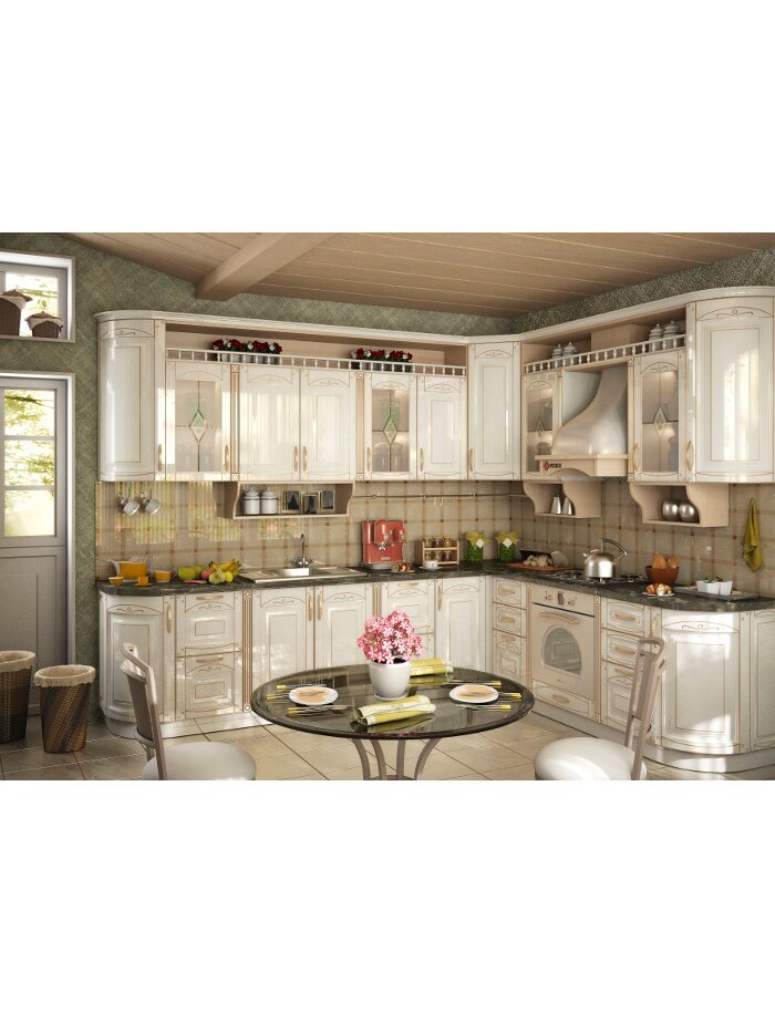 Фрезеровка: "Марго" Материал фасада: МДФ Материал покрытия фасада: Пленка ПВХ Пленка ПВХ-патина Лак-патина