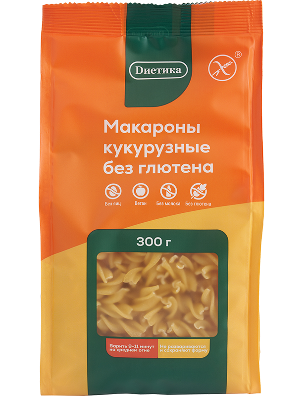Кукурузные макароны ТМ «Диетика» производятся из высококачественного сырья на европейском оборудовании. Не содержат глютена, имеют все необходимые сертификаты и официальный знак «Перечёркнутый колос».