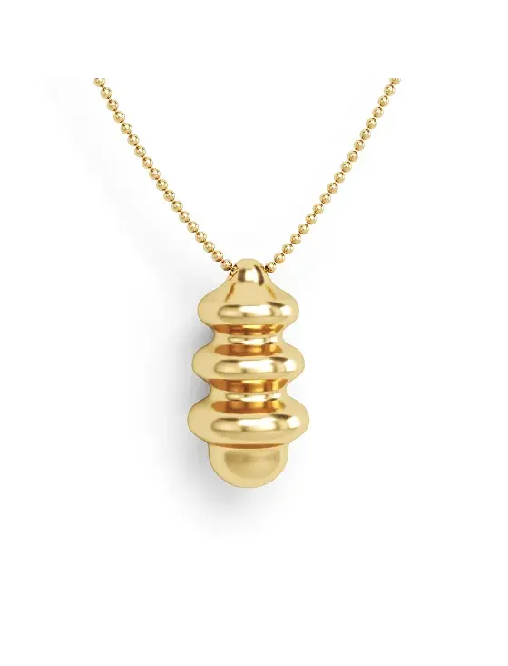 Кулон pagoda - это современное переосмысление классической китайской пагоды, воплощенное в минималистичной и тактильно приятной форме. От традиционной архитектуры он берет лишь намек, отголосок. Форма напоминает сложенные друг на друга редуцированные ярусы пагоды. Вместо четких границ между ярусами - плавные переходы. Кулон Пагода сделан из нержавеющей стали и покрыт позолотой. Этот амулет используют для защиты от негативной энергии (фэн-шуй), привлечения мудрости, удачи и как талисман для достижения целей, привносящий гармонию в образ.