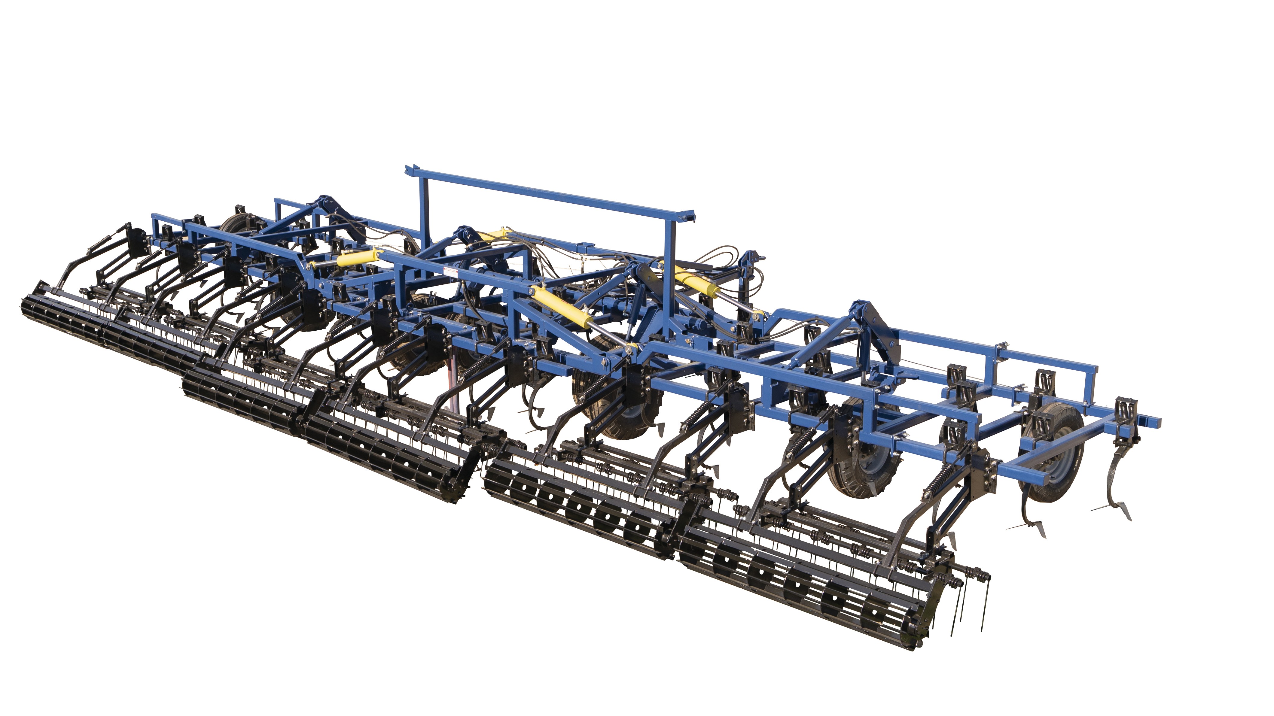 Культиватор представляет собой прицепной комбинированный агрегат с шарнирно-секционной рамой, трехрядным расположением рабочих органов, с пружинной бороной и прикатывающими катками, предназначенный для предпосевной обработки почвы и уходом за парами.