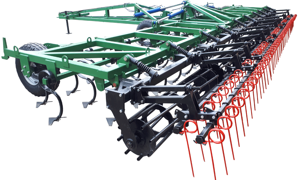 Расстановка S-образных стоек увеличена, что позволяет работать по стерне, тяжелым почвам и плохо подготовленным агрофонам.