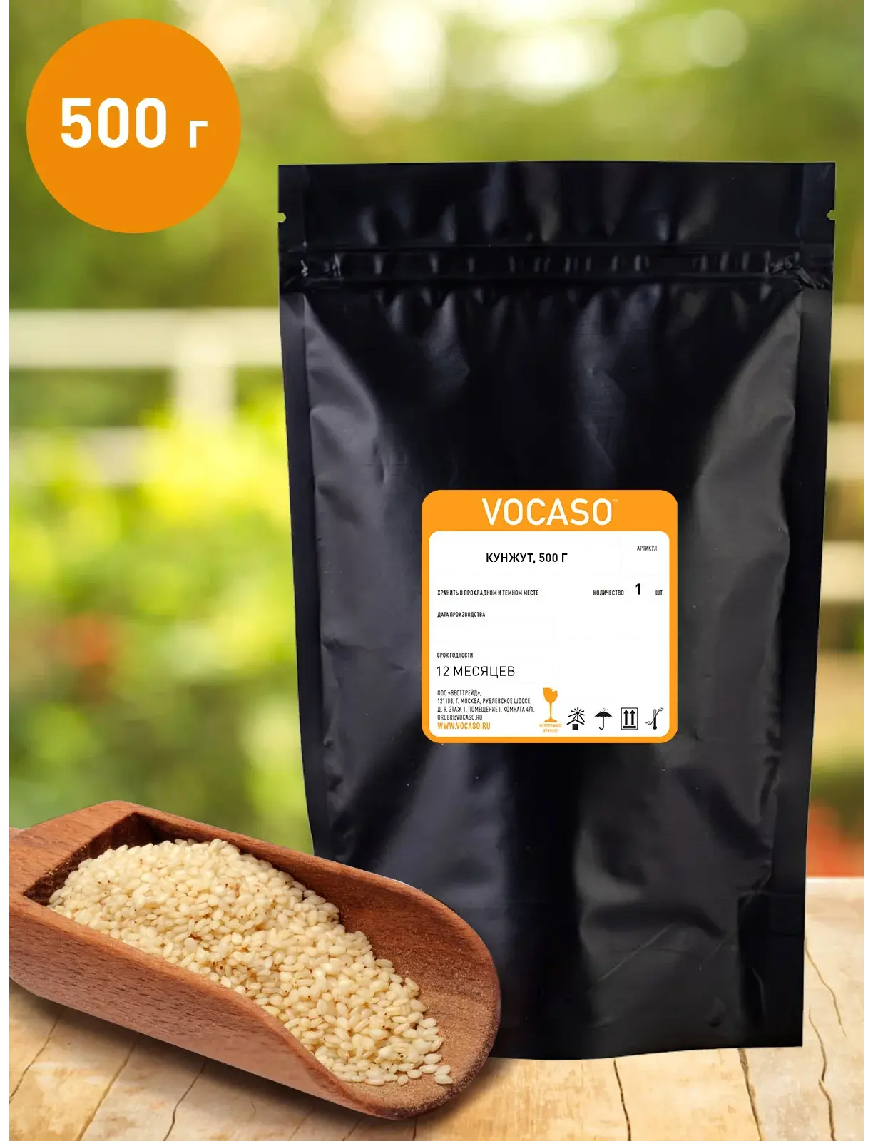 Белый кунжут VOCASO поставляется в непрозрачных металлизированных пакетах Дой-Пак с Ziplock весом 500 г.