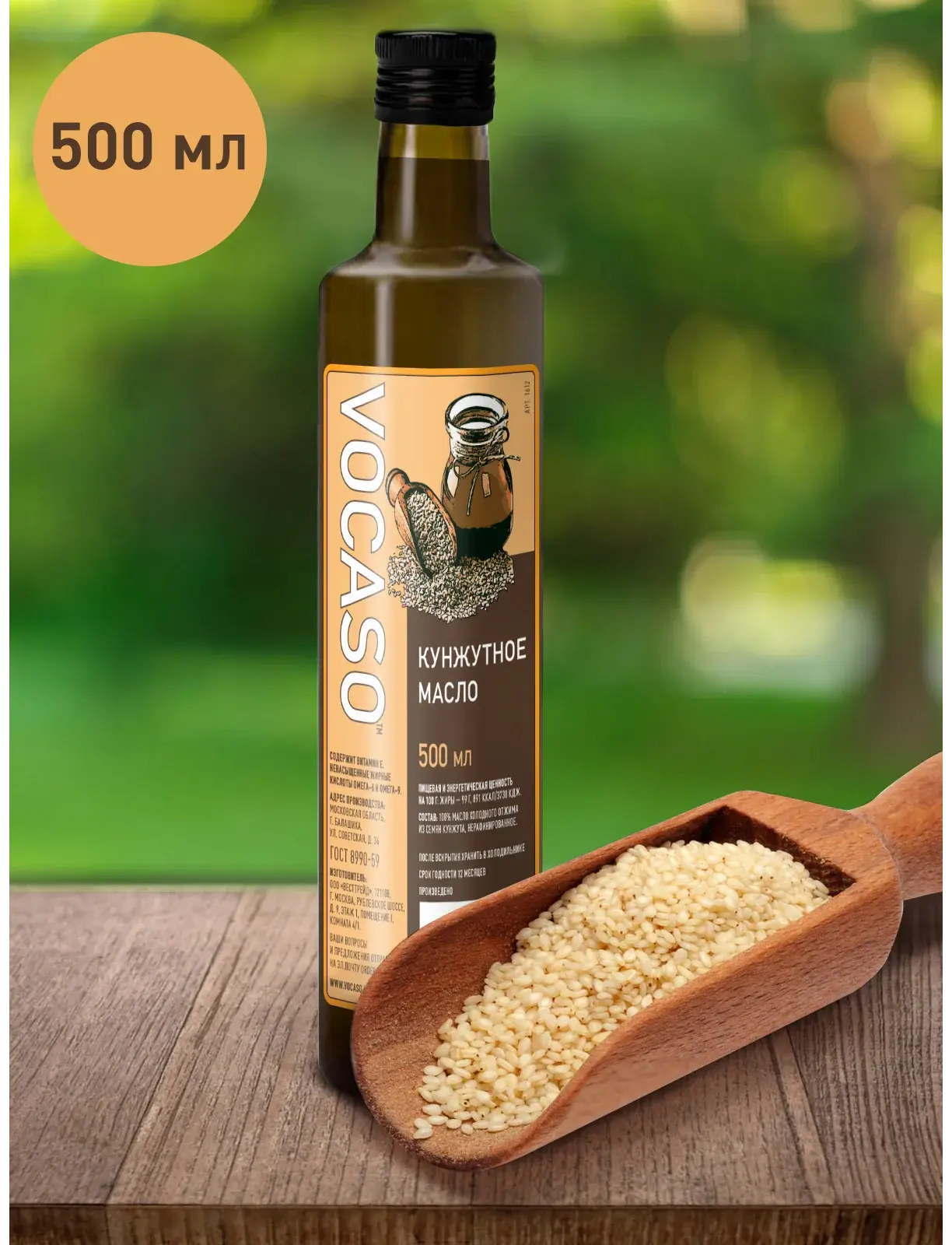 Кунжутное масло VOCASO поставляется в бутылках темного стекла объемом 125 мл и 500 мл.