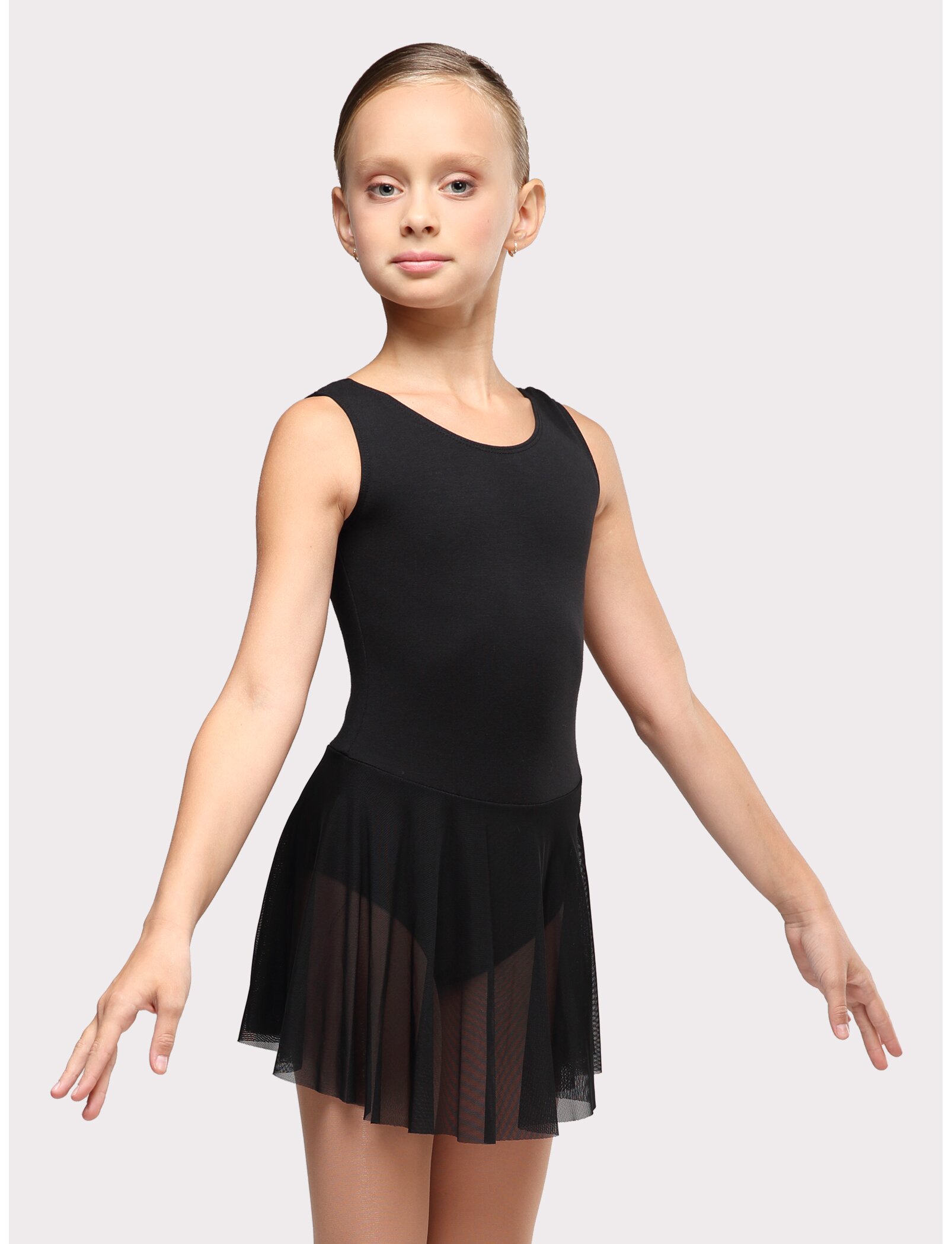 Купальник-майка "Репетиция", юбка-сетка идеально сидит на теле, не сковывает движение при упражнениях. Красивая юбочка в сеточкуделает купальник элегантным, а широкая лямка создает комфорт при движении. Состав ткани 88% хлопок и 12% эластан. Такой состав обеспечивает купальнику износостойкость. Хлопок приятно сидит на теле, а эластан не позволяет материалу растянуться. Материал не линяет и не теряет форму после стирки.