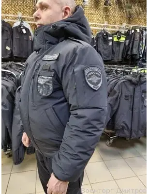 Куртка Полиция зима мужская укороченная Н/О пошита из рип-стопа на мембране, защищает от ветра и осадков;утеплитель — холофайбер 360 г/м², даёт тепло для зимней эксплуатации;фольгированная подкладка отражает тепло тела внутрь и усиливает теплоизоляцию;съёмный капюшон эргономичного кроя, рассчитан на ношение мехового головного убора;четыре вертикальных кармана на молниях спереди и нагрудный карман в подкладке;липучки на рукавах и груди для крепления шевронов и знаков различия;фальш-погоны на кнопке на плечах и резинки в боковых частях пояса для более собранной посадки.