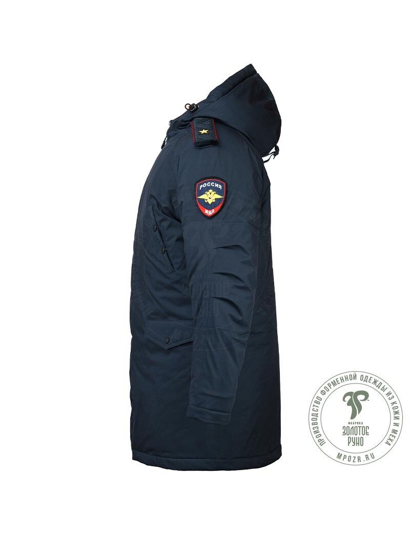 Куртка зимняя генеральская удлиненная - это элемент высшего офицерского состава, представляющий собой утепленную парку прямого кроя, предназначенную для защиты от сильных морозов и ветра. Удлиненный силуэт обеспечивает надежную теплоизоляцию, а строгий дизайн подходит к форме. Куртка прямого силуэта, на простеганной с утеплителем подкладке, с ветрозащитной прокладкой на полочках и спинке, с центральной бортовой потайной застежкой-молнией и ветрозащитной клапаном. Регулировка объема по талии осуществляется с помощью шнура. Капюшон втачной на подкладке из бобра стриженного натурального.