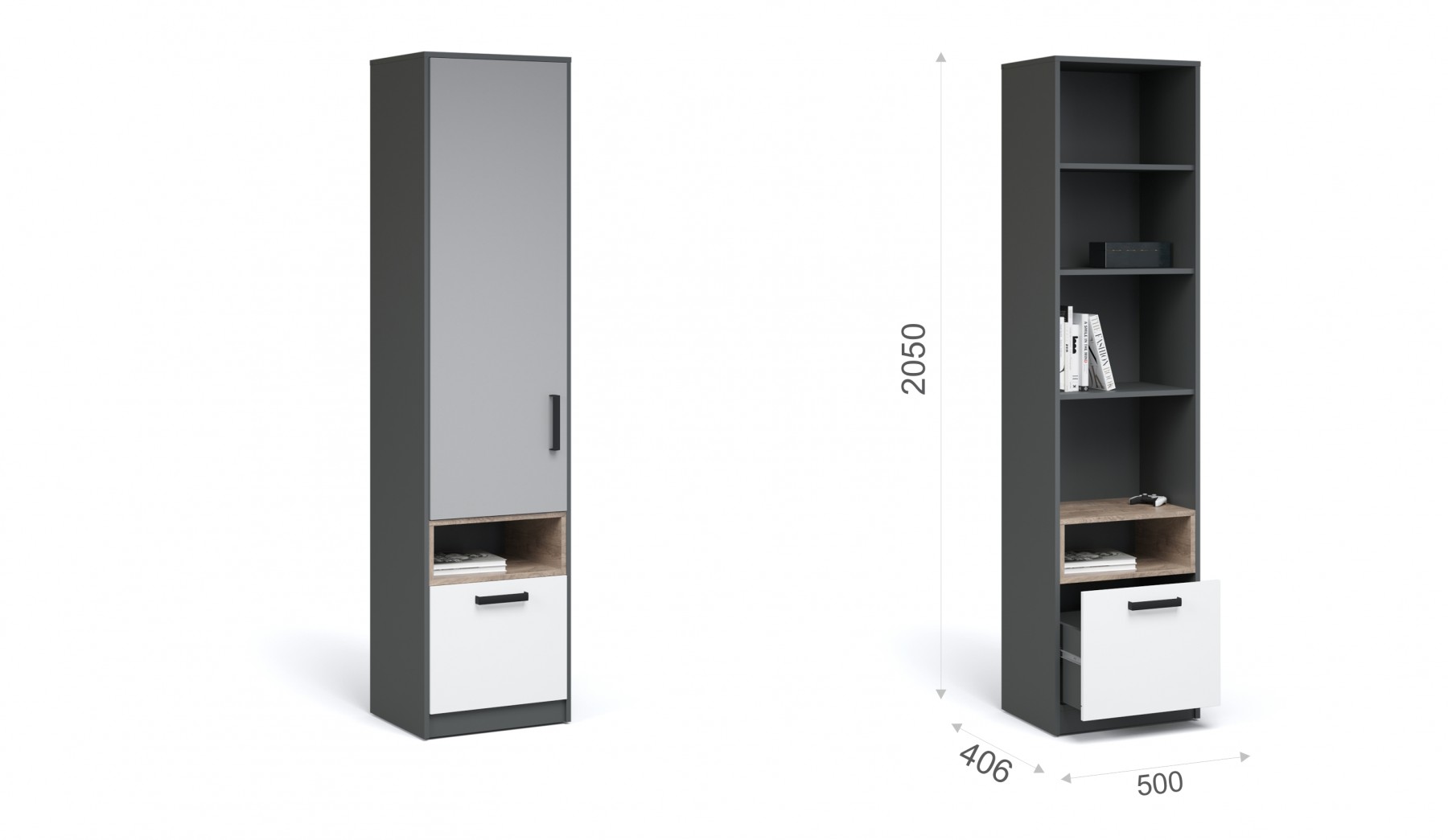 Пенал "Квадро" представляет собой практичное решение для организации вашего пространства. Оснащен открытой нишей, закрытыми полками для хранения книг и аксессуаров. Выступающие фасады в натуральных тонах с 3D эффектом служат ярким акцентом в дизайне интерьера. Пластиковые ручки-скобы контрастных цветов добавляют изделию современность. Произведенный из экологически чистых материалов, пенал гармонично сочетается с другими элементами из серии «Квадро».
