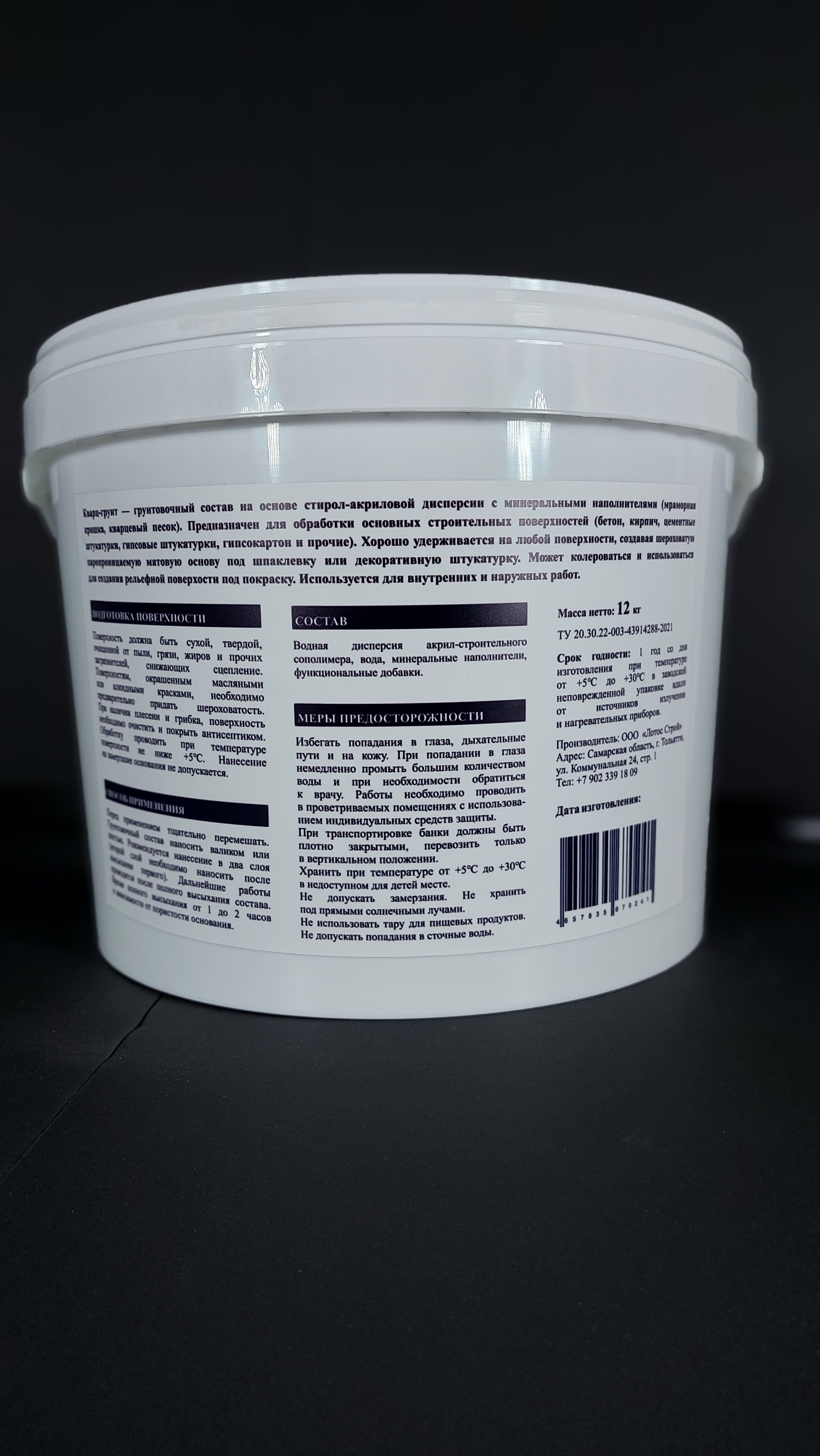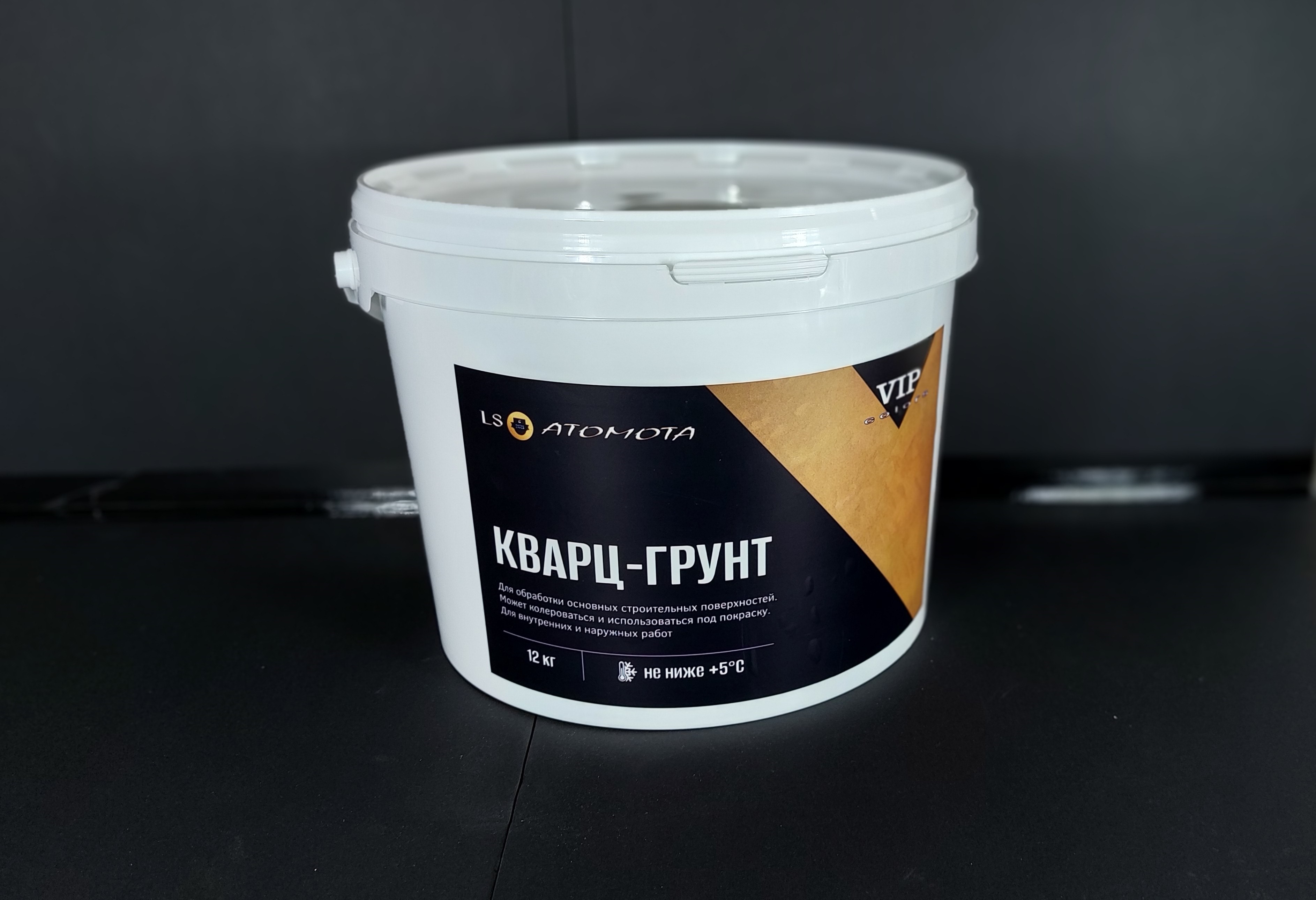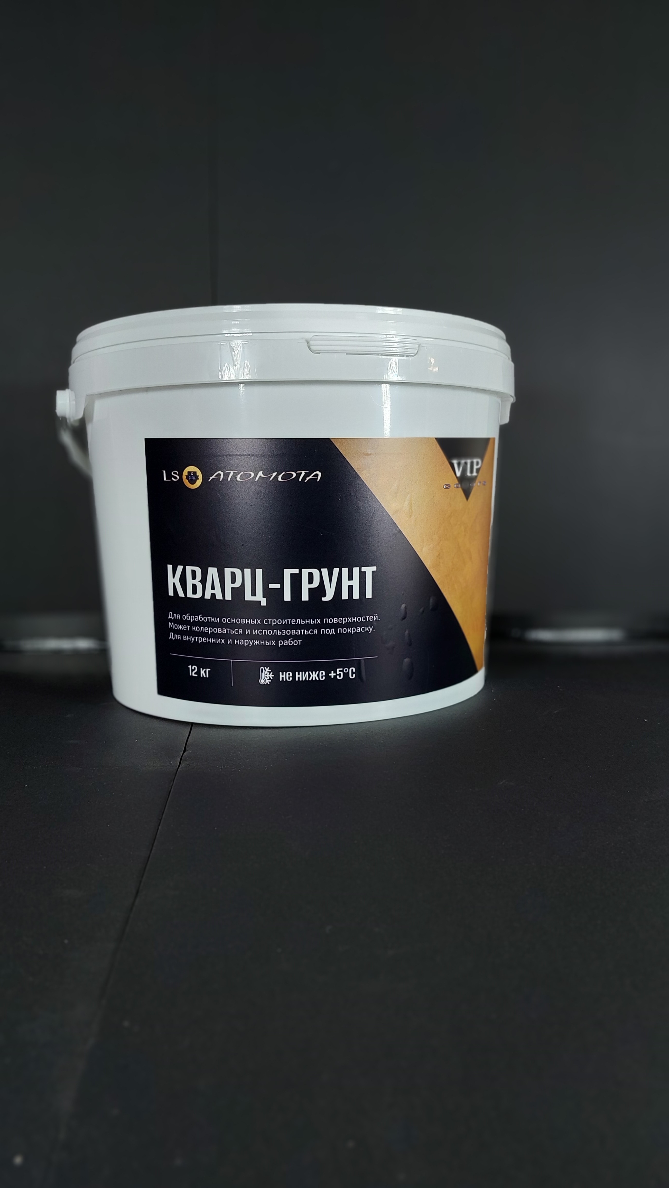 Кварц-грунт – грунтовочный состав на основе стирол-акриловой дисперсии с минеральными наполнителями (мраморная крошка, кварцевый песок). Предназначен для обработки основных строительных поверхностей (бетон, кирпич, цементные штукатурки, гипсовые штукатурки, гипсокартон и прочие). Хорошо удерживается на любой поверхности, создавая шероховатую паропроницаемую матовую основу под шпаклёвку или декоративную штукатурку. Может колероваться и использоваться для создания рельефной поверхности под покраску. Используется для внутренних и наружных работ.
