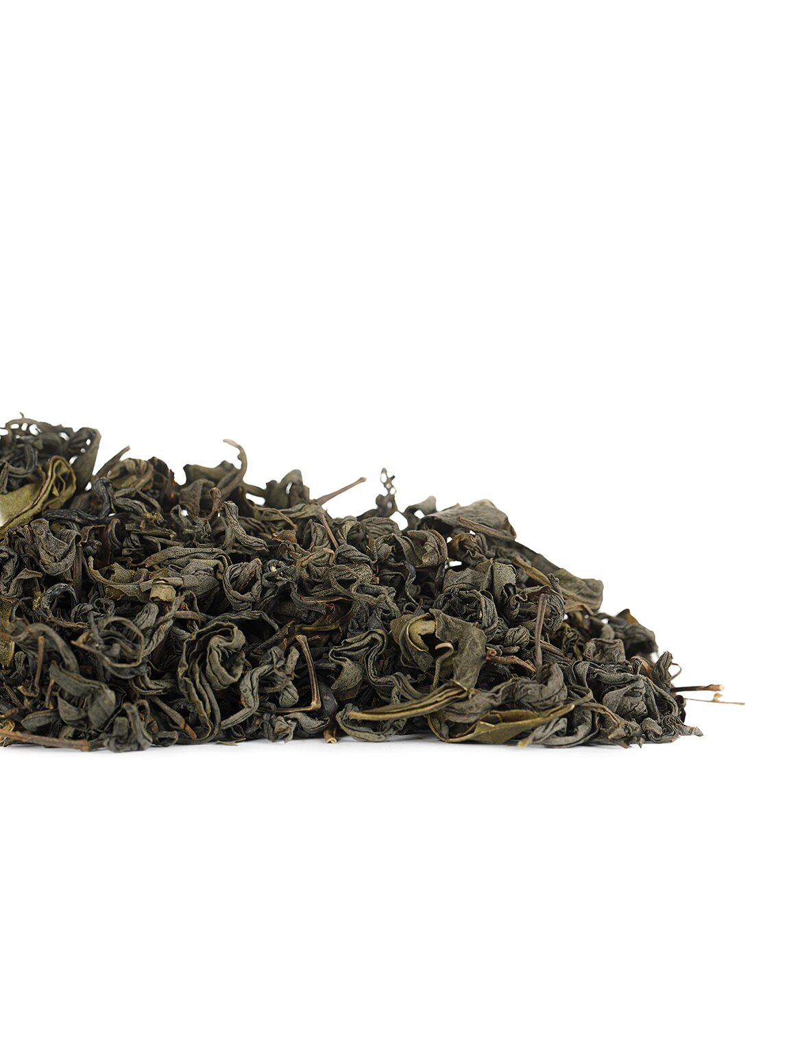 В сухом виде: небольшие скрученные жгутики листьев примерно однородного цвета, с черешками.