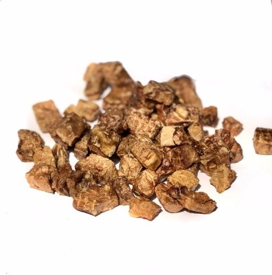 Несомненный фаворит среди лакомств! Компания Варяг производит говяжье легкое мелкой и средней фракции – от 0,7 - 1 см. Нежные и ароматные кусочки сушеного легкого покорили тысячи и тысячи домашних питомцев. И это не случайно. Помимо нежного вкуса это лакомство отличает большое количество витаминов и аминокислот, необходимых животному. И кроме всего прочего, покупать легкое еще и выгодно. Ткань сушеного продукта легкая и воздушная, соответственно, в 100 граммовой упаковке этих кусочков будет значительно больше, чем других вкусняшек)).