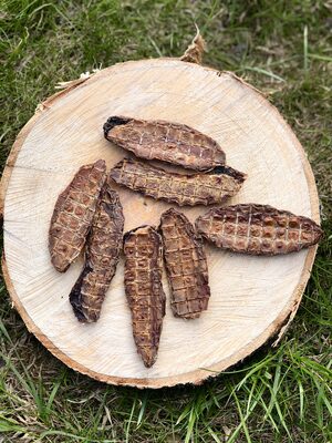 Мясное основание бычьего корня - это полезнейшее и вкусное мясное лакомство с прожилками. Мясное основание - это вяленый деликатес 4 в 1: протеин и легкоусвояемый белок + широкий спектр аминокислот и витаминов. Мясное основание способствует усилению мышц, связок и сухожилий Вашего питомца. Идеально подходит в качестве перекуса, лакомства или поощрения Вашего любимца.